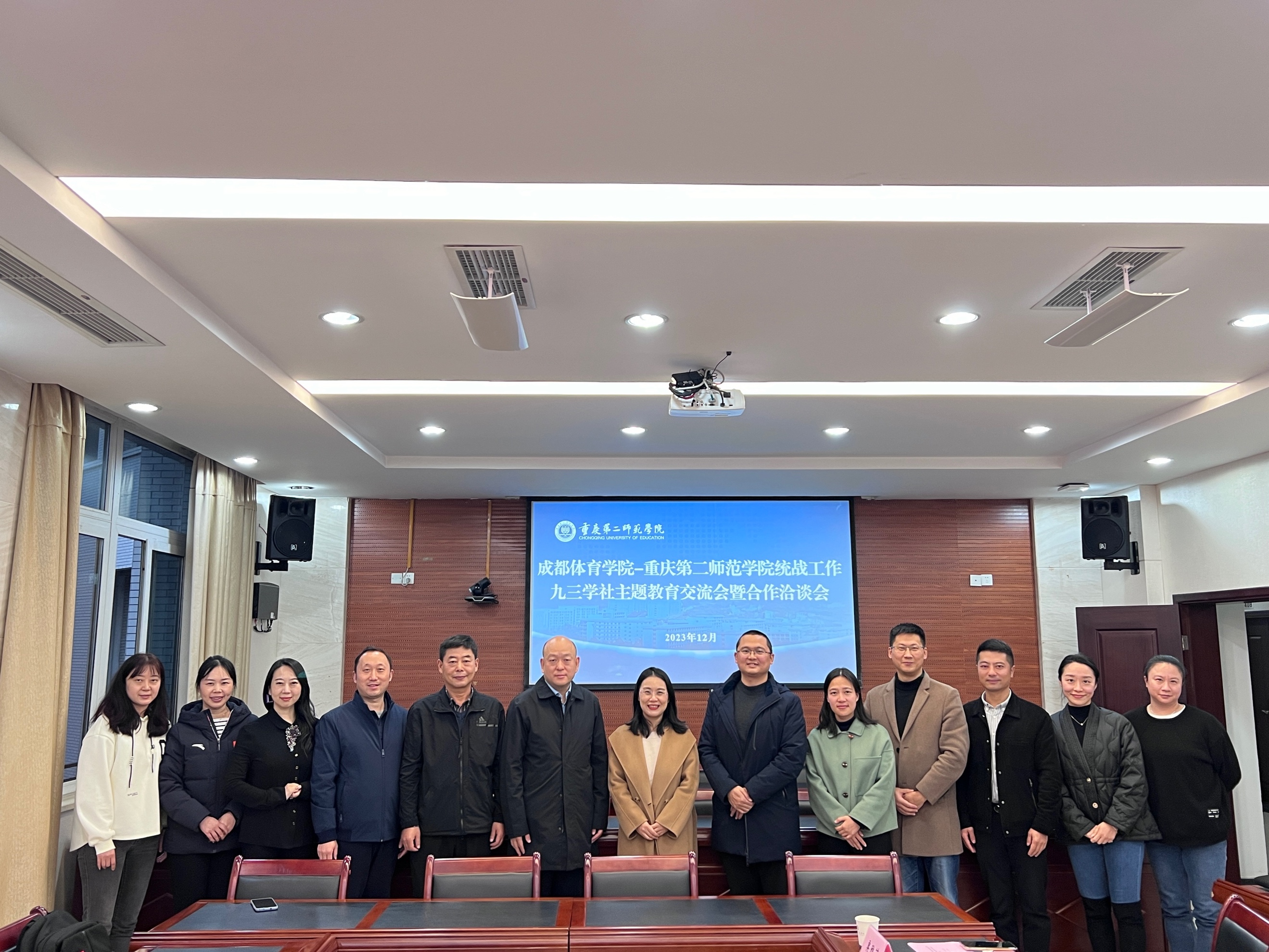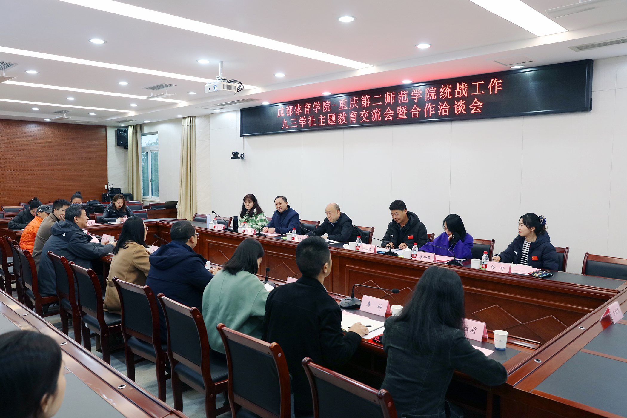 交流会上,双方交流了两校近年来的发展现状,双方分别介绍了两校在人才培养、科学研究、服务社会、统战工作等方面的情况。双方表示,将发挥各自学科专业优势,加强合作,为两地体育、教育等方面高质量发展贡献智慧和力量,以务实行动推动成渝双城经济圈建设发展建设。九三学社allwincity万象城官方网站支社负责人吴向明、重庆第二师范学院九三支社负责人李科分别介绍了各自支社的建设发展情况,分享加强组织发展、组织能力建设、推动社员服务社会、深化参政议政等方面的经验和成果。两校社员就九三学社基层组织活动开展、发展和动员社员、发挥社员特长服务地方发展的相关经验以及存在问题进行了深入交流探讨。