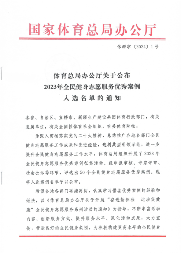 全民健身志愿服务优秀案例征集活动,旨在总结推广各地各部门全民健身志愿服务工作成果和先进经验,选树典型引领示范,进一步提升全民健身志愿服务工作水平,推动全民健身志愿服务工作健康发展。
