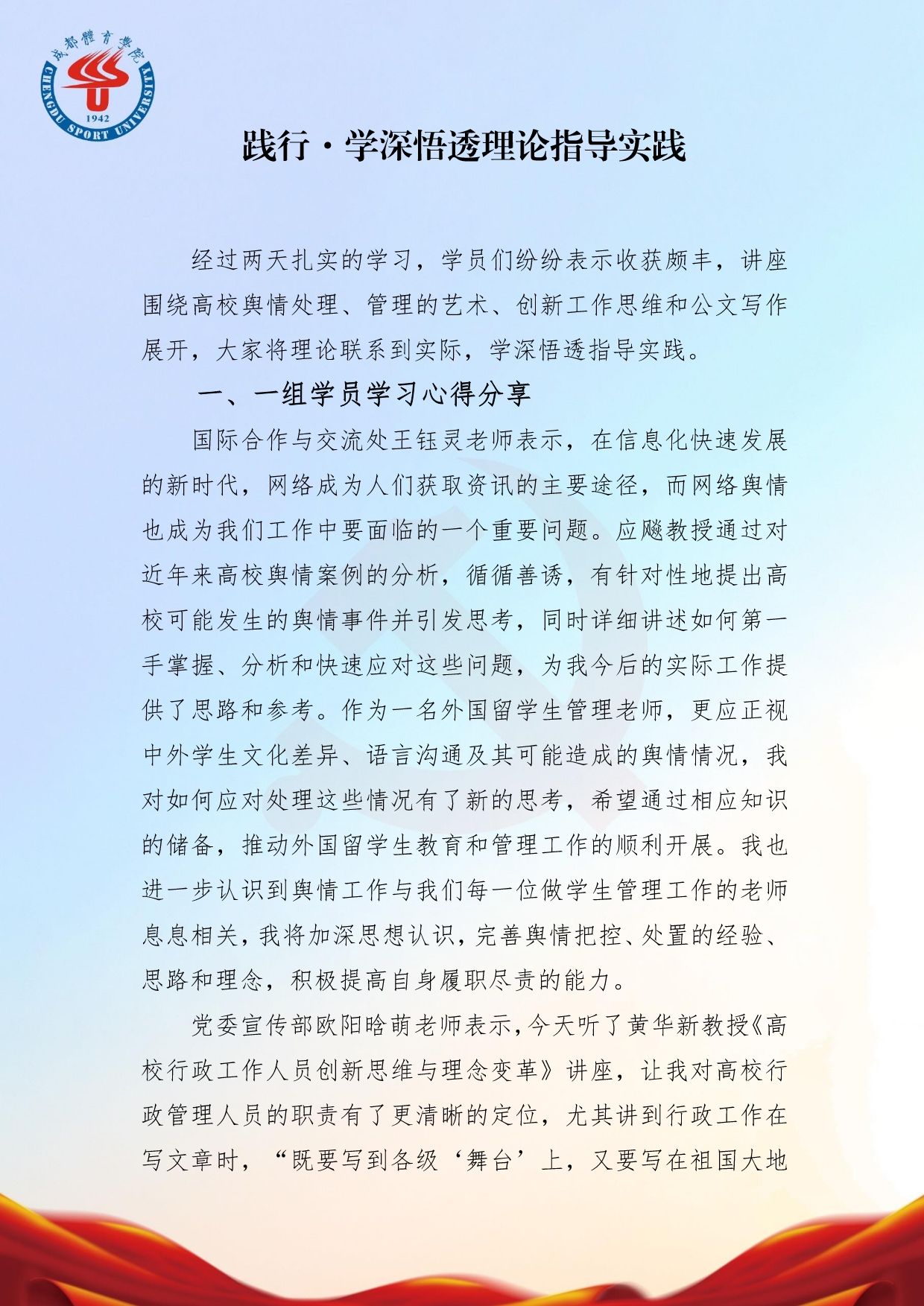 学校行政管理人员综合素质能力提升培训班学习简报(第二期)