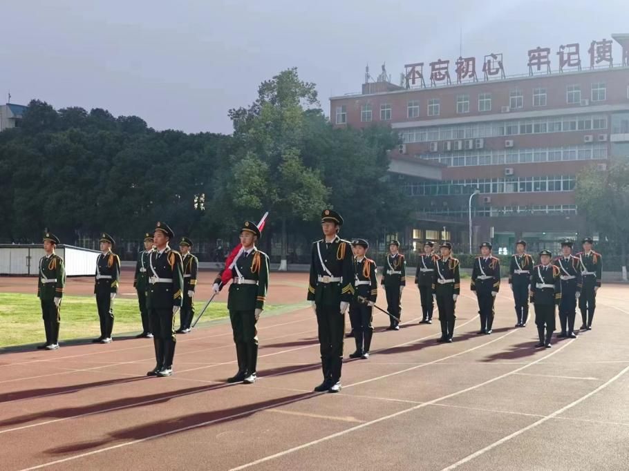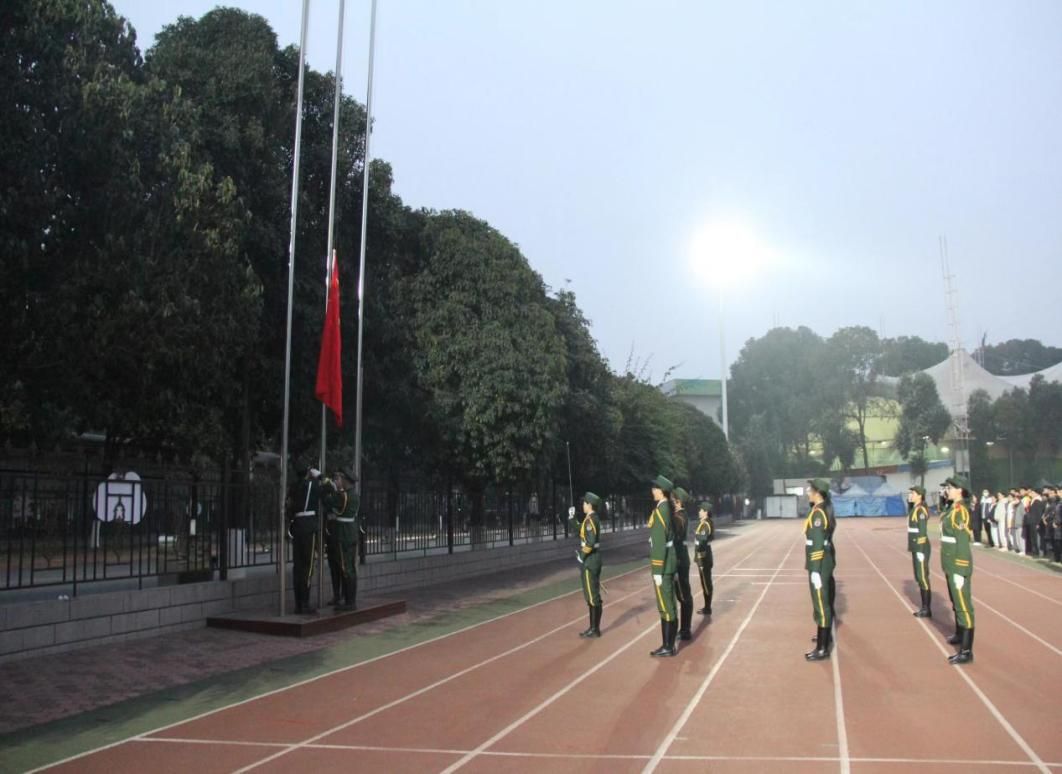 7点20分,升旗仪式正式开始。校国旗护卫队队员迈着坚定的步伐护送鲜艳的五星红旗走向升旗台。在慷慨激昂的国歌中,鲜艳的五星红旗冉冉升起,迎风飘扬。盎然晨晖下,飘扬红旗映东方晨曦;鲜艳国旗下,坚定目光展如火青春。全体师生庄严肃立,向国旗行注目礼。
