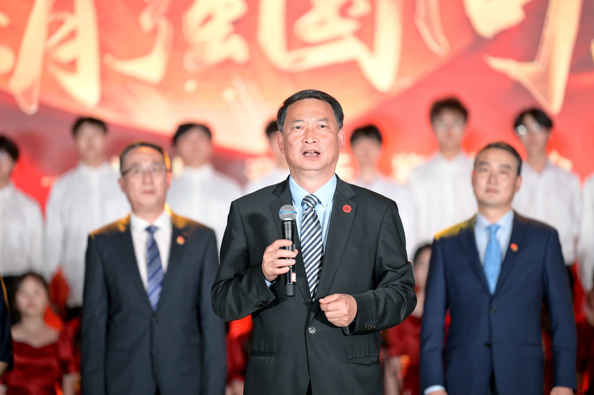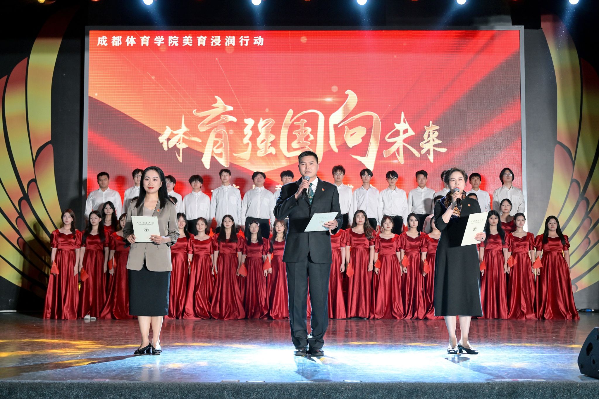 他带领全场共唱《我和我的祖国》,激励全校师生踔厉奋发、勇毅前行,传承和弘扬中华体育精神,为强国建设、民族伟大复兴贡献力量。