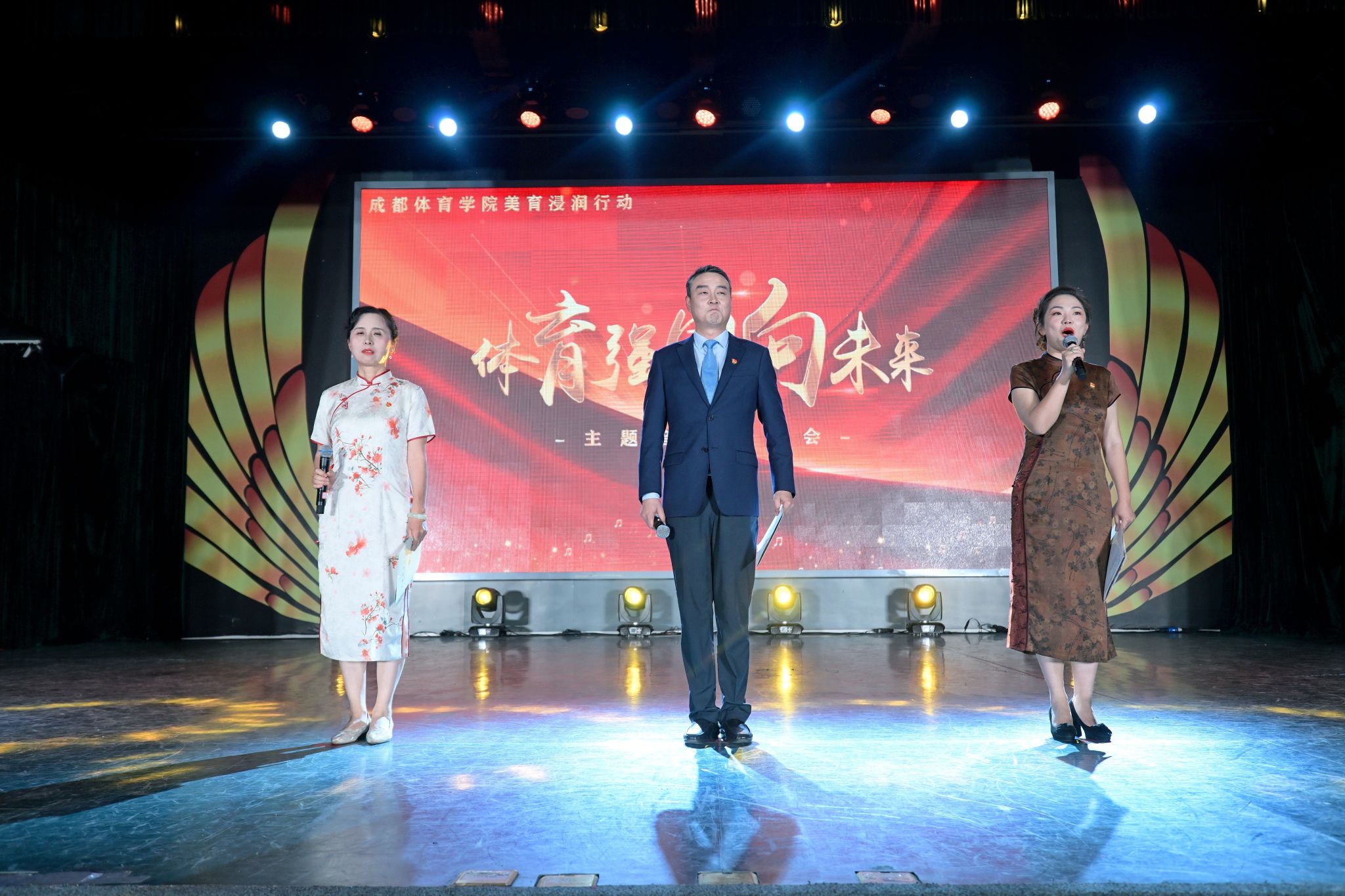 他指出,新中国成立75周年之际举行“体育强国向未来”主题音乐鉴赏会,是深入贯彻落实习近平总书记关于学校美育工作的重要指示,进一步加强学校美育工作、强化学校美育育人功能的一次重要尝试。以“我爱我国,我爱我家”为主题,围绕“厚植家国情怀”、坚持五育并举,结合办学特色、人才培养、校园文化与重要节日庆典,用美育教育的方式表达“体育人”的爱国强国情怀,传承“使命在肩、奋斗有我”的中华体育精神,提升全员美育意识和美育素养,以美育浸润学校,打造昂扬向上、文明高雅、充满活力的校园文化,建设时时、处处、人人的美育育人环境。全体师生以自信动人的姿态站上舞台,在品鉴音乐艺术的过程中传播美、传递美,用体育人特有的精神面貌表达对伟大祖国、对辉煌事业的拳拳盛意,更充分展现了学校坚持以美育人、涵养高尚情怀所取得的宝贵成果。