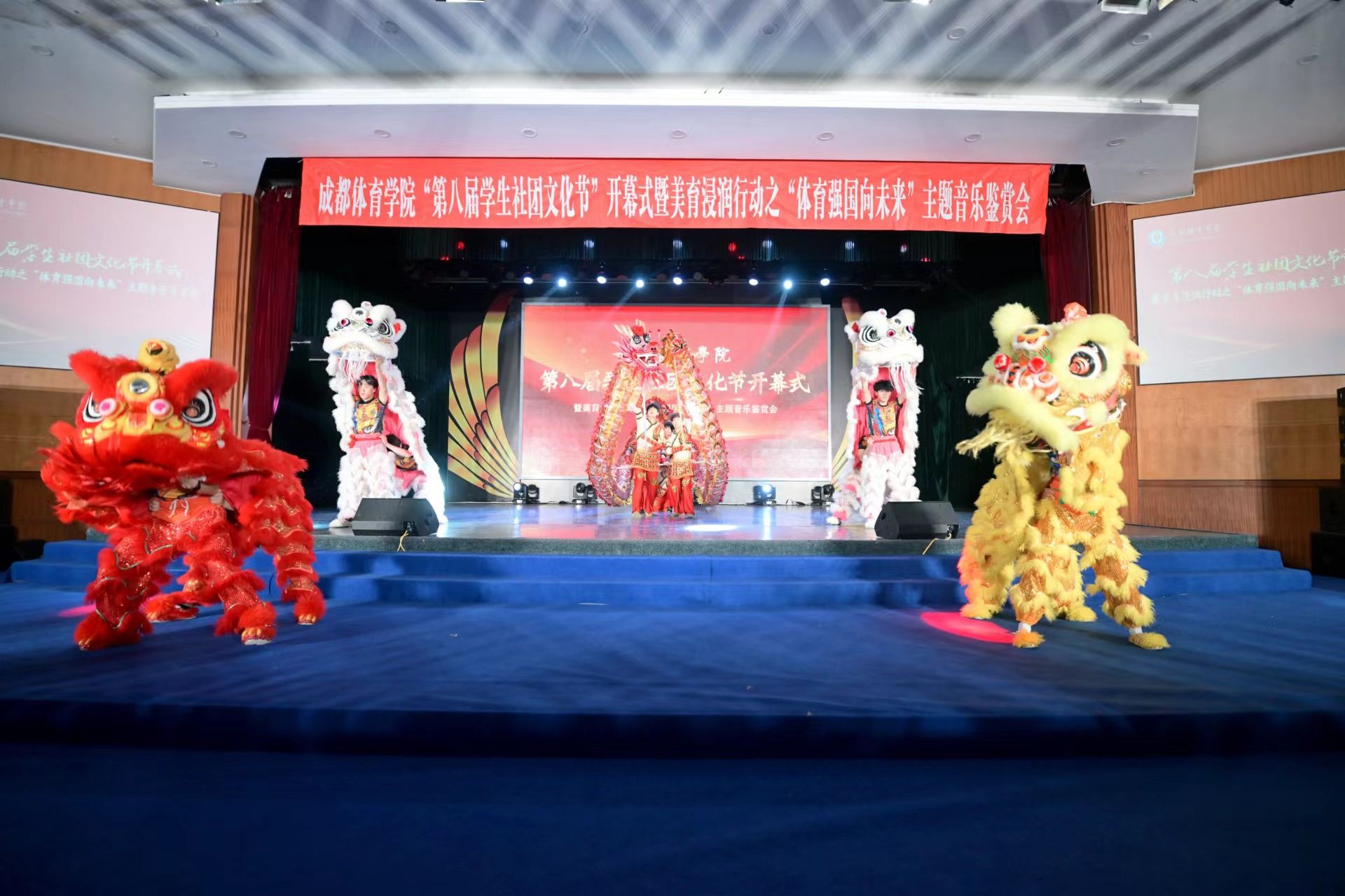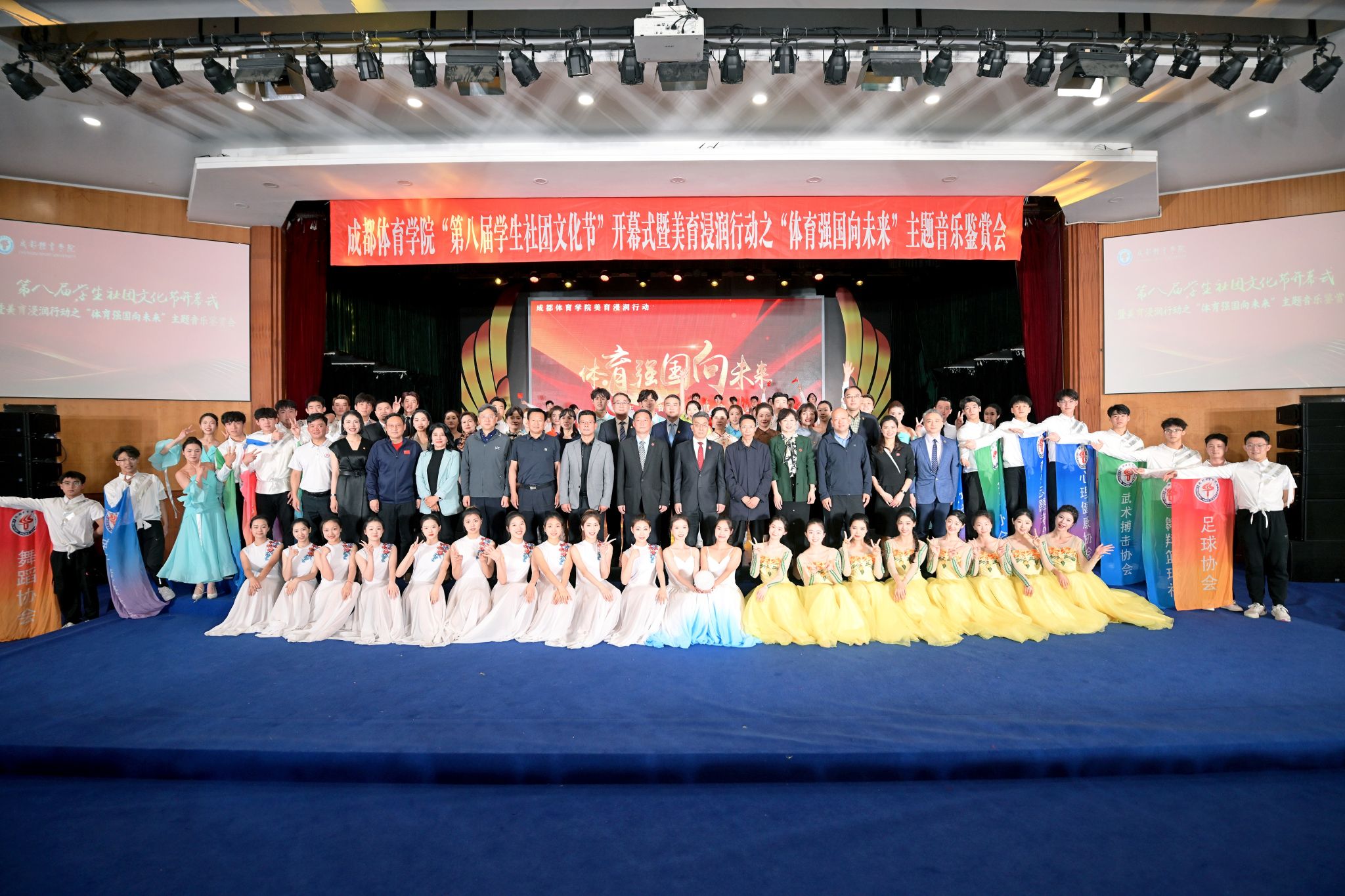 以美育人,以文化人,全员美育,成体在行动!4月23日晚,allwincity万象城官方网站第八届学生社团文化节开幕式暨美育浸润行动之“体育强国向未来”主题音乐鉴赏会在学术报告厅隆重举行。