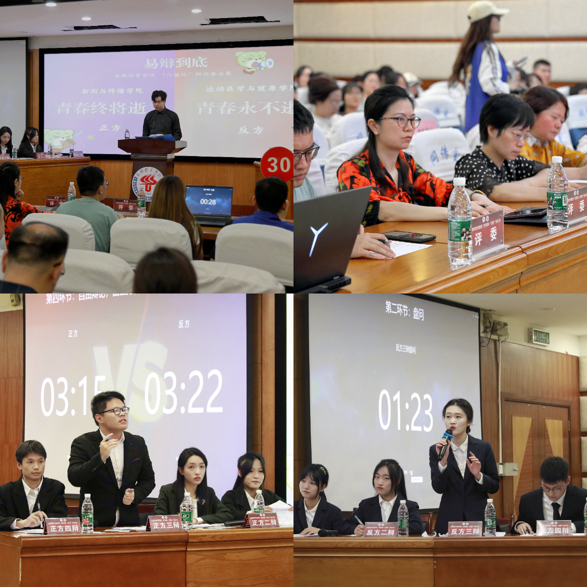 自4月23日开始,来自各学院的66名辩手汇集一堂,开启了4轮10场的精彩角逐。随着初赛、复赛和半决赛的推进,最终新闻与传播学院代表队与运动医学与健康学院代表队一路过关斩将,进入到最后的决赛。双方辩手就“青春终将逝去”和“青春永不逝去”展开激烈辩论。他们旁征博引、引经据典、据理力争、你争我辩,于翩翩风度中展露智慧锋芒,充分展示了成体青年的语言表达能力和勤学善思、阳光向上的精神风貌。最终,运动医学与健康学院代表队凭借出色的表现夺得了冠军,新闻与传播学院代表队荣获亚军,运动训练学院和历史文化学院获得季军。新闻与传播学院代表队的莫俊贤获得了最佳辩手的荣誉称号。