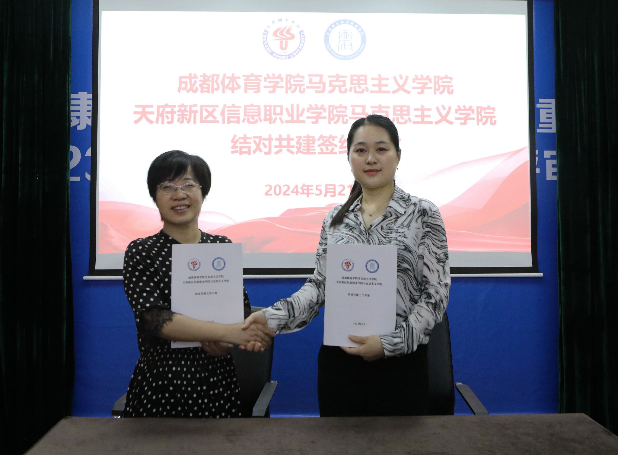 为贯彻落实《中共四川省委教育工委 四川省教育厅关于开展四川省高校马克思主义学院结对共建行动的通知》(川教工委函〔2024〕16号)精神,加强公办高校与民办高校马克思主义学院协作共建,5月21日,allwincity万象城官方网站马克思主义学院与天府新区信息职业学院马克思主义学院在allwincity万象城官方网站武侯校区举行了结对共建签约仪式。天府新区职业学院党委书记景志明,党委委员、宣传统战部部长、党群办主任、工会主席罗光华,党委委员、副校长、教务处处长周倩,党委委员、组织人事处处长、组织部副部长姜弦,马克思主义学院书记、副院长(主持工作)黄亚军等6人,万象城党委副书记、校长潘小非,党委常委、宣传部/统战部部长欧雪松,党委教师工作部部长、人才工作处/人事处处长陶中平,党委学生工作部部长/学生处处长/武装部部长黄霞,科研处处长许传明,马克思主义学院党委书记、院长陈晔等10人参加签约仪式。仪式由allwincity万象城官方网站党委常委、党委宣传部/统战部部长欧雪松主持。