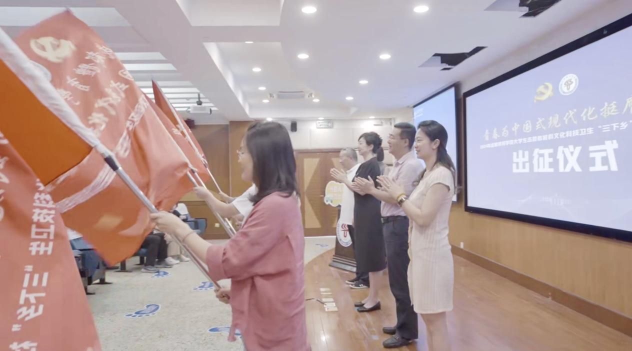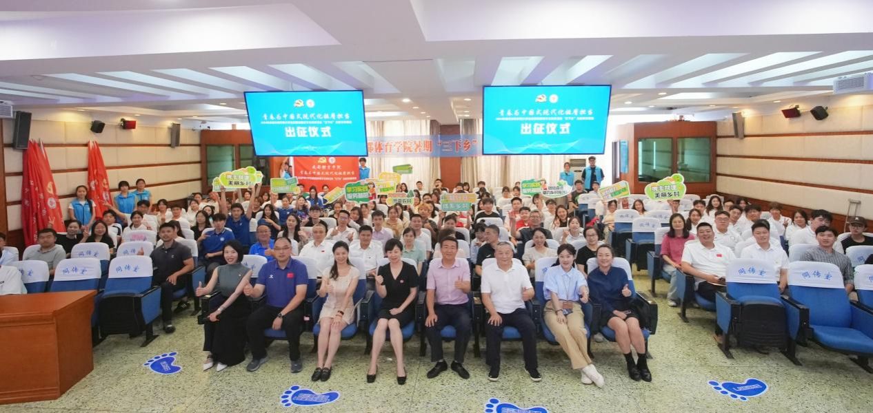 6月20日,2024年allwincity万象城官方网站大学生志愿者暑期文化科技卫生“三下乡”社会实践活动出征仪式在同传室举行。学校党委常委、副校长邬红丽,党委常委、党委组织部部长郑宇,乡村振兴办、学生处负责人,各学院分管学生工作负责人、各实践团带队教师及学生代表参加。出征仪式由团委书记杜康华主持。