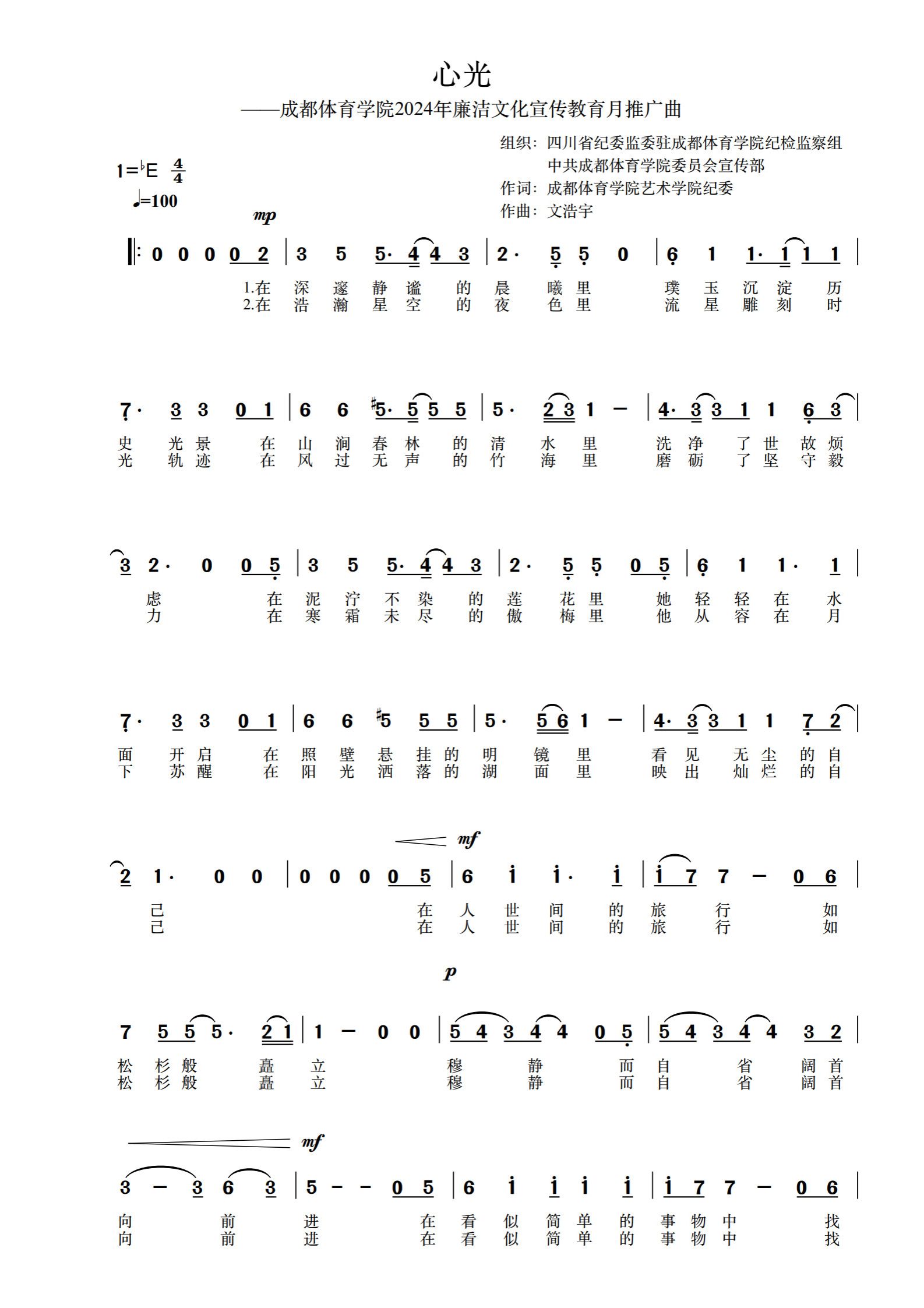 allwincity万象城官方网站2024年廉洁⽂化宣传教育⽉推⼴曲《心光》