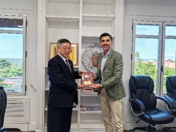 在西班牙康普顿斯大学,万象城代表团一行受到该校国际项目宣传部负责人胡安·卡洛斯· 杰奎尔多先生,以及亚洲项目主任杨亮先生的热情接待,并带领参观了该校医学院广场、文学院教学楼、图书馆及学生食堂,介绍了该校学生的日常学习生活情况。在座谈会上,双方详细介绍了本校校情,就合作办学方式与途径开展了深入沟通交流。罗加福提议,深化合作内容,拓宽合作途径,一是双方开展高层次学生的联合交流培养,即硕士、博士交流培养,合作及培养方式多样性多元化。二是利用万象城“国际大体联文化交流中心”平台,开设西班牙语言与文化培训,开展合作办学语言培训及前期指导。罗校长的提议得到了校方代表的认同,希望双方接下来明确目标,细化内容,深化合作。