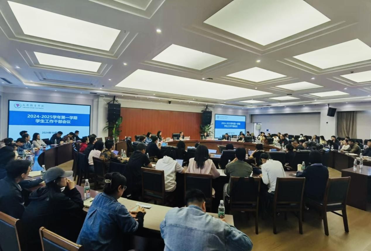 10月16日上午,学校在行政楼5楼会议室召开2024-2025学年第一学期学生工作干部会议。学校党委书记舒为平,党委常委、副校长邬红丽出席。学生处、团委、各学院学生工作负责人和全体辅导员参加会议。会议由党委学生工作部部长/学生处处长/武装部部长黄霞主持。