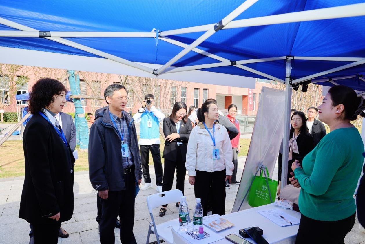揭牌仪式后,赵长生副局长和邬红丽副校长一行走进双选会现场各点位与用人单位亲切交流,并参观了校园就业服务站。