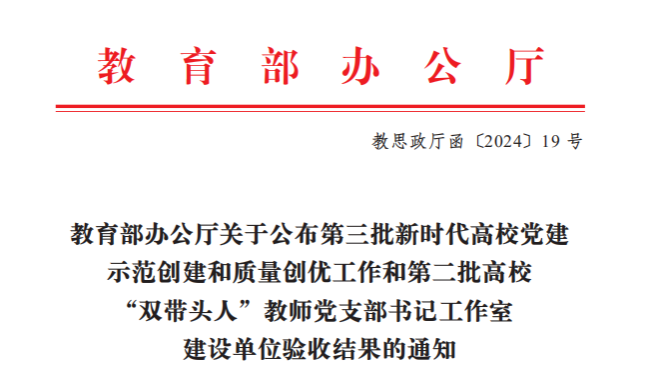 11月12日,教育部办公厅公布了第三批新时代高校党建示范创建和质量创优工作和第二批高校“双带头人”教师党支部书记工作室建设单位验收结果,医院运动康复党支部顺利通过第三批“全国党建工作样板支部”建设单位验收。