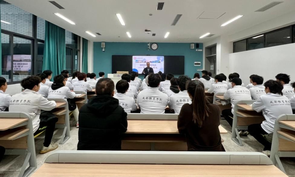 12月4日,学校党委常委、副校长王明建在行健楼A209教室为足球运动学院2023级同学以《脚踏实地,志存高远——与学校共成长》为题,讲授了一堂精彩的“思政课”。