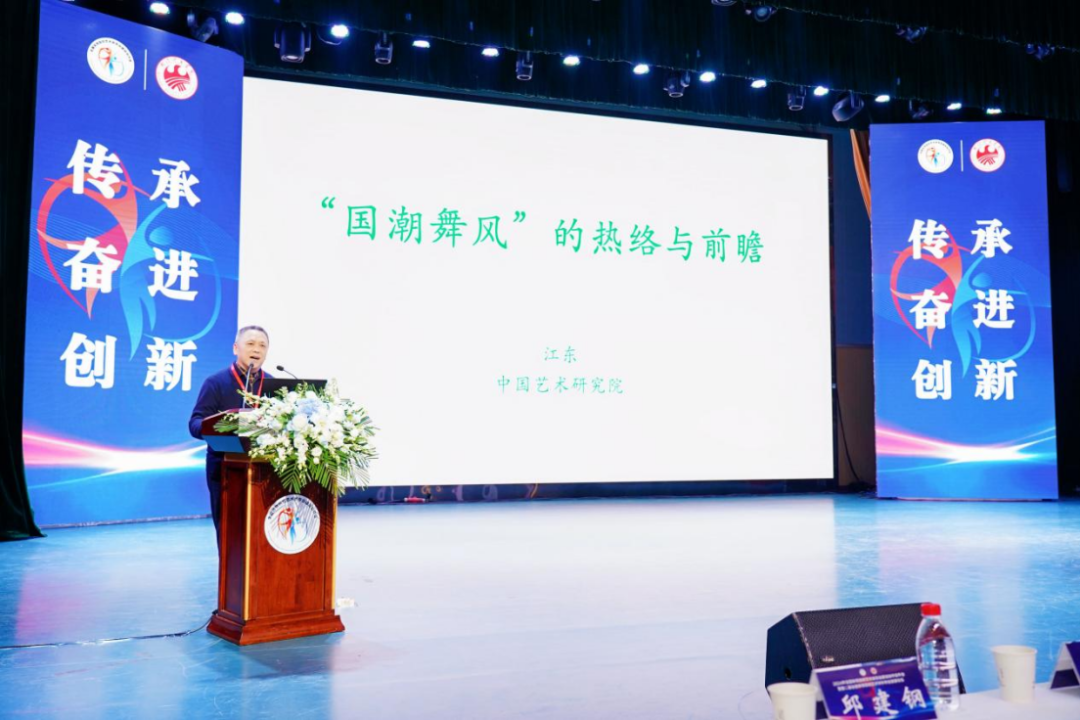年会结束,第二届全国体育院校艺术学科专业发展论坛随之为参会人员带来了一场酣畅淋漓的学术盛宴。一级演员、全国青联副主席、中国舞蹈家协会副主席、国家艺术基金专家委员会委员黄豆豆,以《致敬英雄》作为主题,深度剖析了艺术作品在传承发扬中华优秀传统文化中的作用与价值,以及中国传统舞蹈文化所蕴含的核心精髓,并对其在当代的创新发展路径展开了深入探究。通过对底蕴深厚的中国舞蹈文化充分挖掘与传承,致力于推动中国舞蹈艺术在新时代浪潮中的世界舞台上,能够绽放出崭新的生机与活力。教育部全国艺术硕士专业学位教育指导委员会舞蹈分委会委员江东以《“国潮舞风”的热络与前瞻》为题,指出中华传统舞蹈中所蕴含的智慧与情感,映照着中华民族精神,在时代的文化浪潮中,将传统与现代结合,进一步挖掘中华传统舞蹈的精髓意义非凡,努力将“国舞风尚”植入当今的审美观念是文艺工作者的重要使命。北京舞蹈学院教授、北京舞蹈学院学术委员会荣誉委员张平以《中国标准舞“学院派”的建构与思考》为题,梳理了中国国标舞“学院派”的发展历程与教育成果,为体育院校提升国际标准舞的教育水平与艺术质量提供了指引方向。