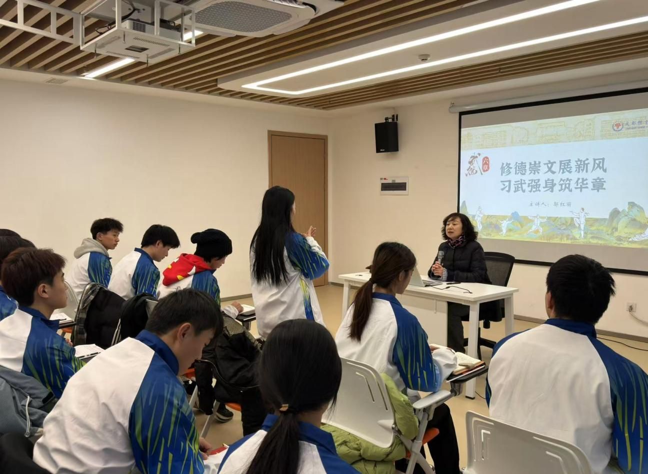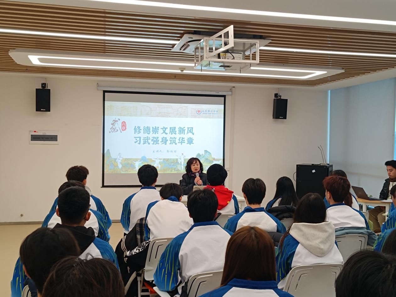 为深入学习贯彻习近平总书记关于思政课建设的重要指示精神,持续提升思政课教学的针对性和吸引力,12月12日,学校党委常委、副校长邬红丽在学生活动中心三楼以“修德崇文展新风,习武强身筑华章”为主题,为武术学院2023级同学们上了一堂精彩的思政课。