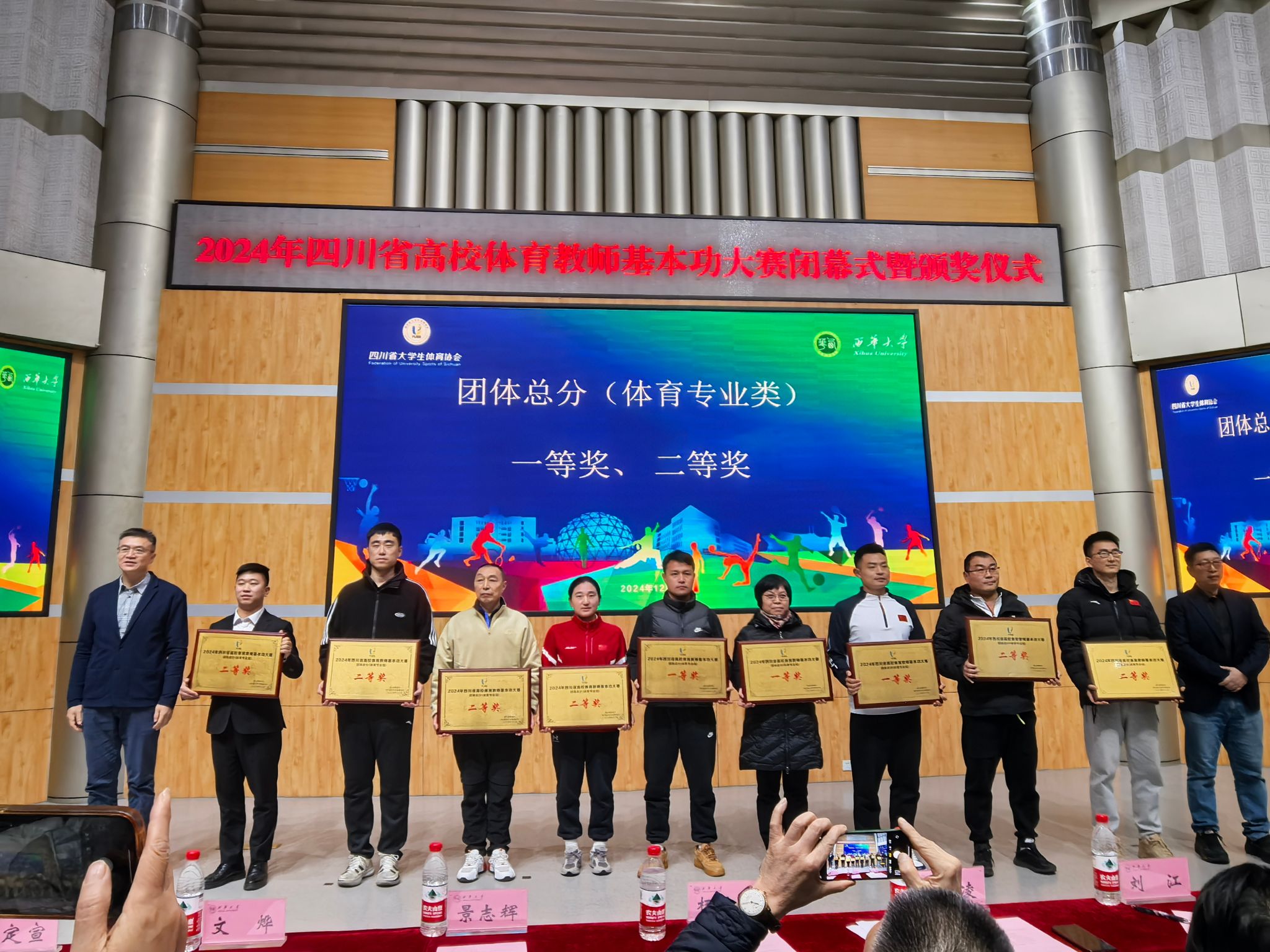 12月11日-13日,由四川省教育厅主办、四川省大学生体育协会执行、西华大学承办的2024年四川省高校体育教师基本功大赛在西华大学(郫都校区)成功举办,共有来自全省60所高校的221名教师参加,万象城派出4名教师代表参加比赛。经过激烈的角逐,运动医学与健康学院钱钰老师荣获体育专业学科组一等奖,运动训练学院曾静老师荣获体育专业学科组二等奖;运动训练学院杜慧敏老师和体育教育学院梅晓涛老师分别荣获体育专业术科组二等奖,教师发展中心李蕊荣获“优秀指导教师”称号,学校荣获体育专业组团体一等奖。