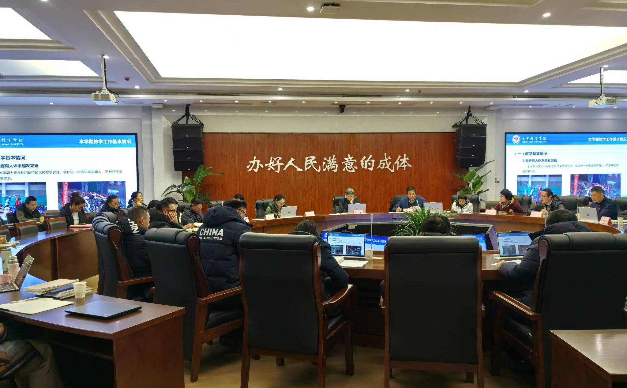 会上,教务处/实验管理处处长李明达总结了本学期本科教学基本情况、取得的成绩和不足,结合专家对本科教育教学审核评估和师范专业认证反馈的相关问题,对期末工作及2025年学校本科教学重点工作进行安排和部署。教学质量评估中心主任何颖汇报了审核评估、专业认证及论文抽检“回头看”等相关情况。学校教学督导组组长岳海鹏通报了本学期教学督导工作开展情况和课堂教学中存在的问题,并深刻分析了原因。体育教育学院(体操学院)副院长吴小彬就体育教育专业在师范专业认证过程取得的收获、存在的问题与反思进行了分享。