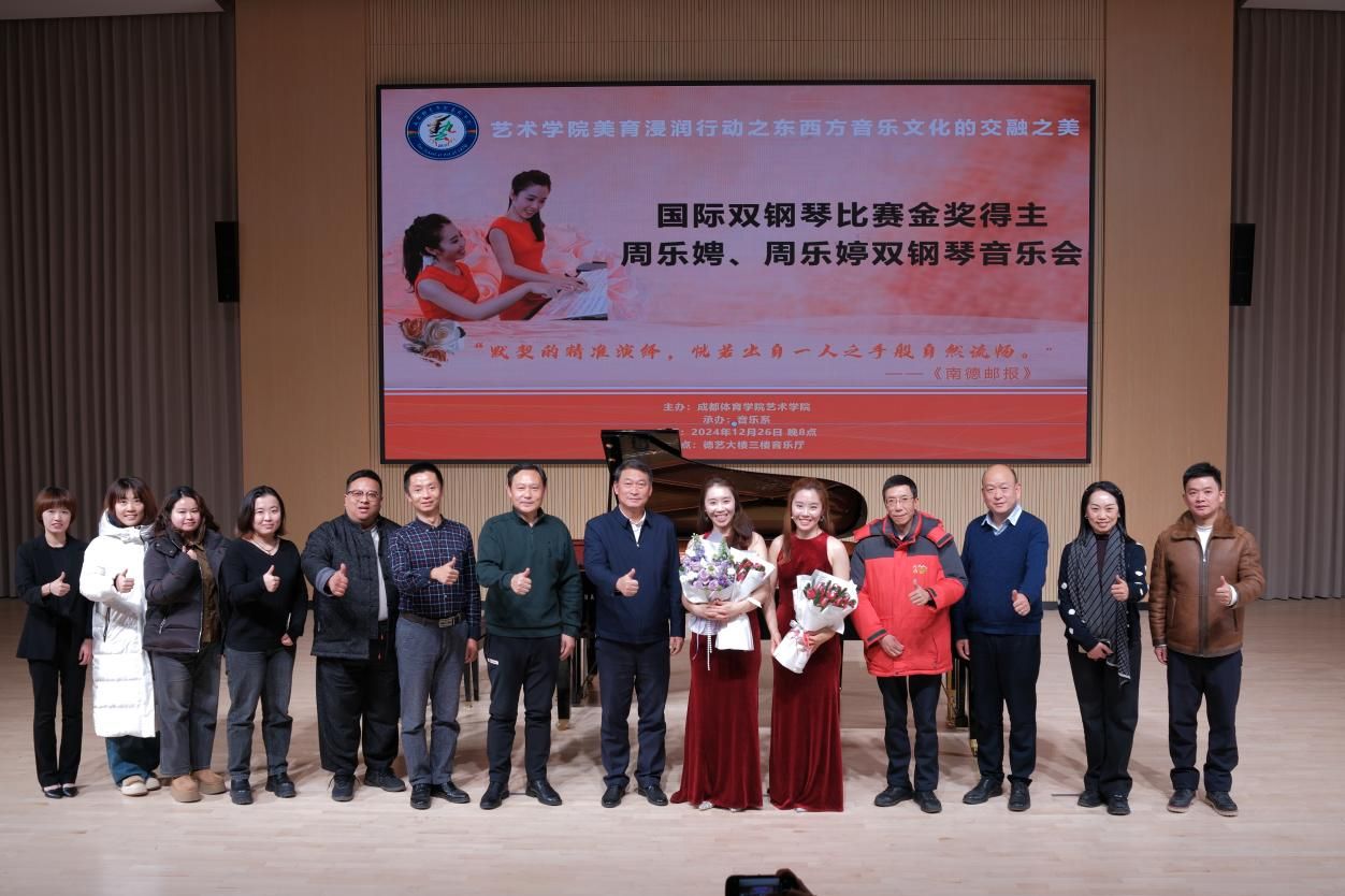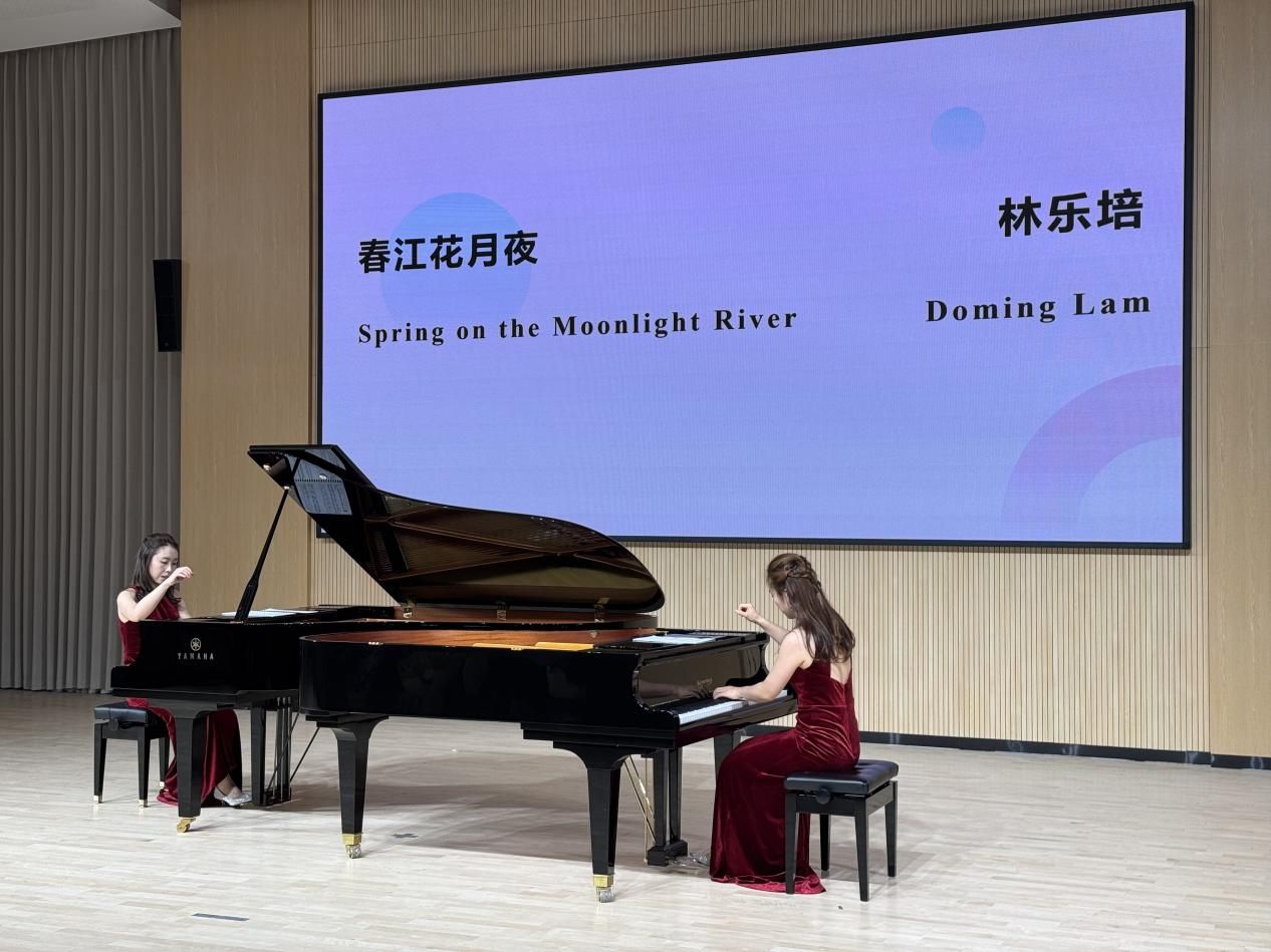 12月26日,艺术学院美育浸润行动在德艺大楼音乐厅举行,特邀国际双钢琴比赛金奖得主、香港双钢琴二重奏协会会长周乐娉和周乐婷带来东西方音乐文化交融之美的双钢琴音乐会,学校党委书记舒为平,党委副书记、纪委书记王骏飞,党委常委、党委宣传部/统战部部长欧雪松莅临现场指导观摩,艺术学院领导班子、音乐系师生参加,器乐教研室张易博士主持。
