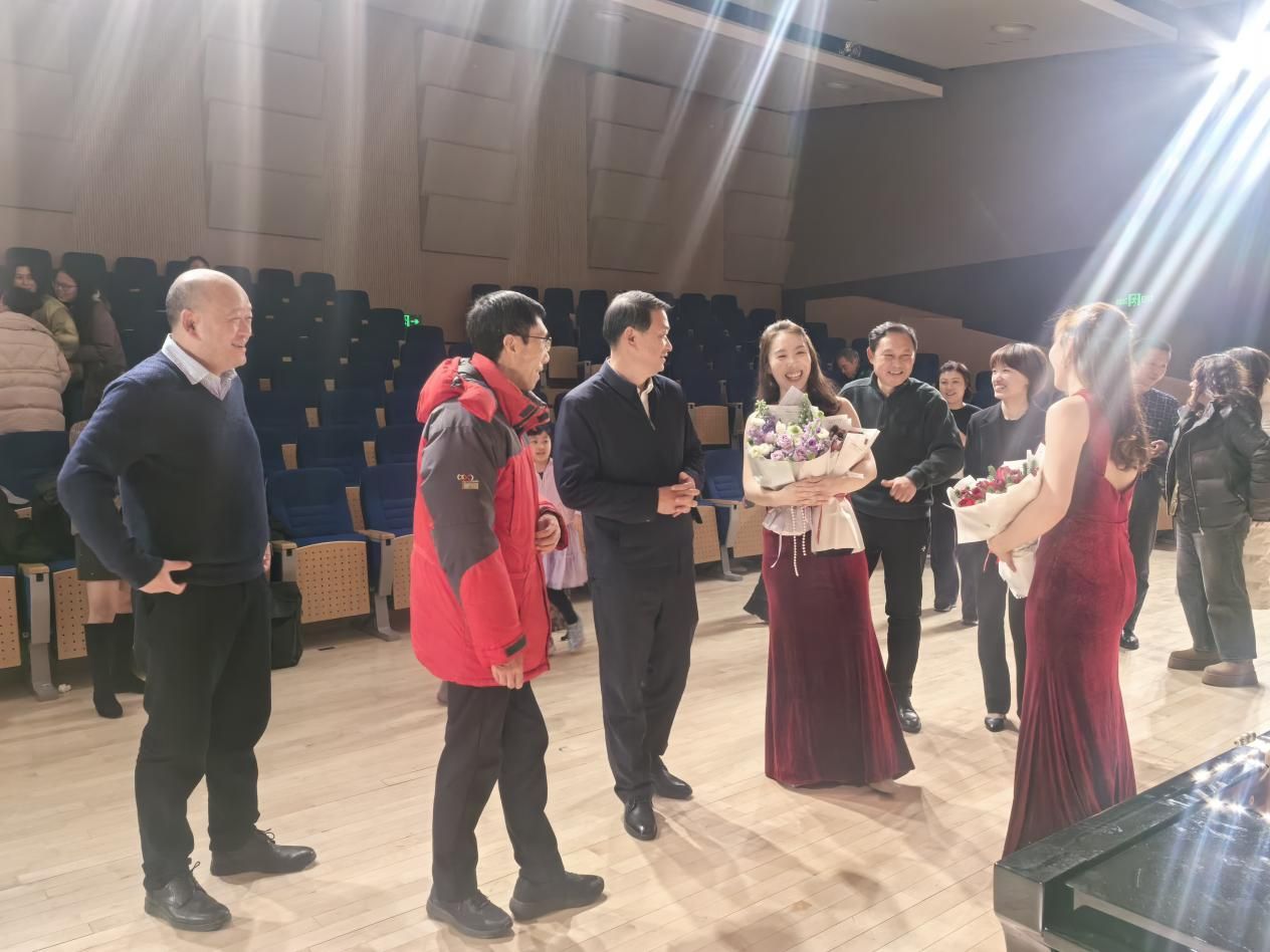 音乐会后,学校领导与双钢琴演奏者周乐娉和周乐婷进行了亲切交流。美育浸润作为强化学校美育的育人功能和丰富校园文化的重要举措,艺术学院将持续推进此项工作,不断强化育人成效。