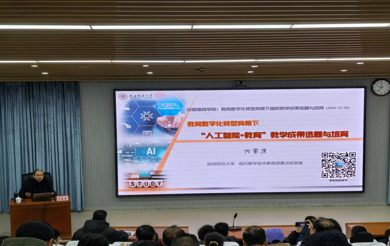 为进一步深化万象城教育教学改革,全面总结教学问题、凝练教学特色,做好教学成果的选育工作,提高成果申报质量,学校于12月29日上午特邀陕西师范大学现代教学技术教育部重点实验室副主任何聚厚教授作题为《教育数字化转型背景下数智赋能教学成果选题与培育》专题讲座。学校各教学单位负责人、分管教学副院长、各教研室负责人,省级教改项目团队成员、骨干教师及相关职能部门负责人参加讲座。讲座由教务处/实验管理处处长李明达主持。