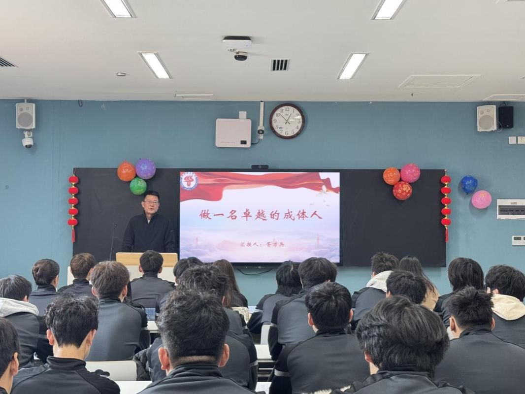 2024年12月31日,学校党委副书记胥万兵以“做一名卓越的成体人”为主题,在行健楼A214为运动训练学院2024级3班的学生讲授了一堂思政课。班主任莫燕及全班同学参加。