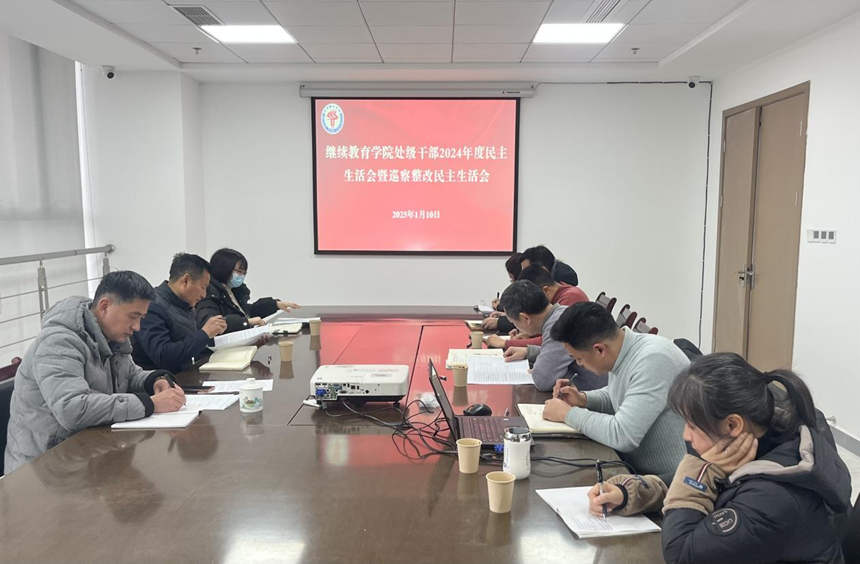 1月10日下午,继续教育学院召开处级干部2024年民主生活会暨巡察整改民主生活会。学校党委常委、副校长付东同志;党委组织部副部长张娟同志出席,继教院全体教职工参加,会议由直属党支部书记杨冰主持。