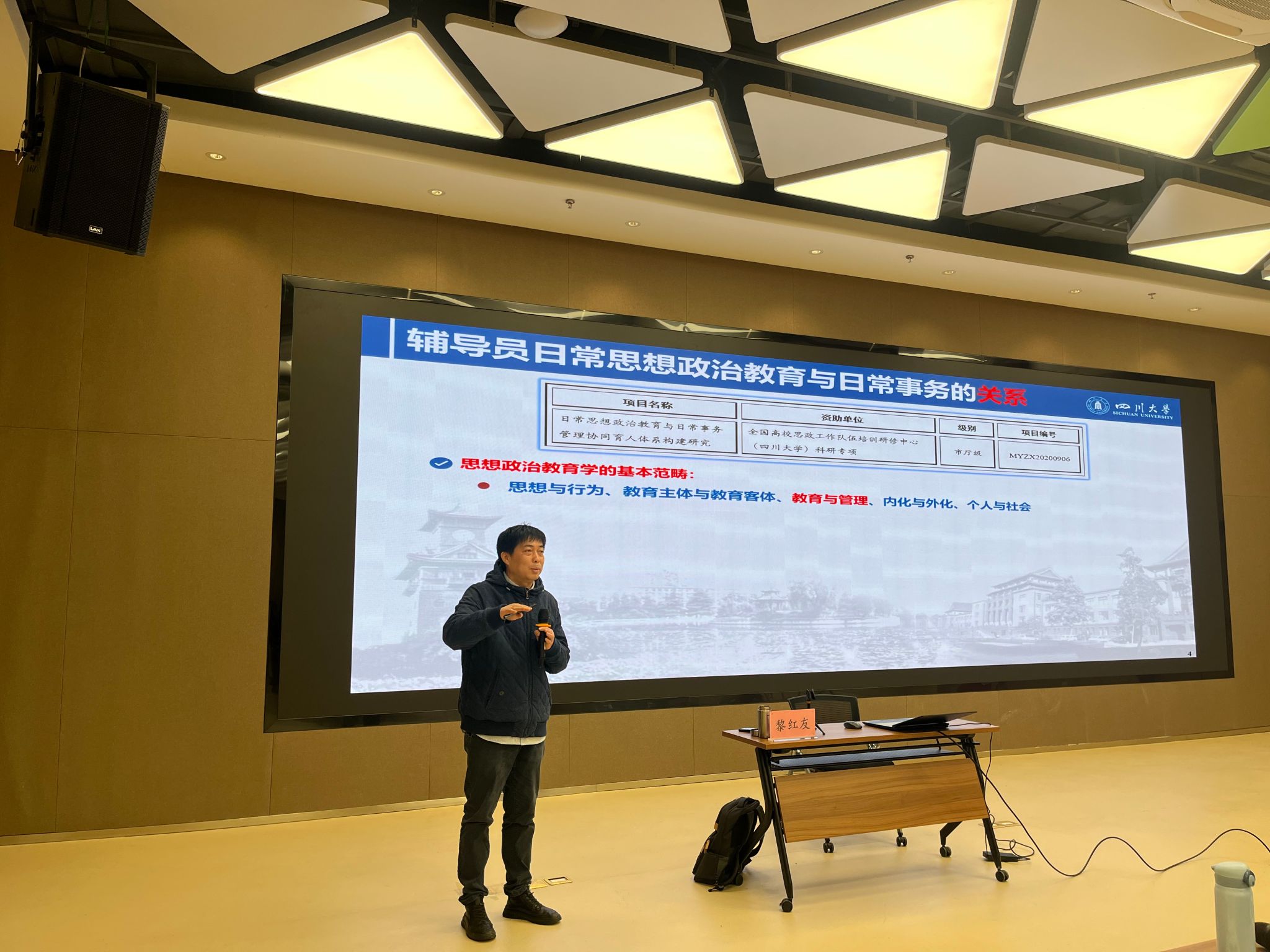 本次培训主要针对辅导员在实际工作中的痛点难点,以及发展需求,特别邀请到了四川大学、电子科技大学等“双一流”高校的知名专家,针对性地开展了辅导员工作室精细化体系构建与实践探索、科研能力提升与课题高质量申报撰写技巧、心理健康素质能力提升等方面的专题培训。培训过后,全体辅导员老师结合培训和工作实际,围绕“如何全面加强新时代高校辅导员队伍建设”、“怎样有效加强学风建设”两个主题,开展分组研讨交流,提出改革性意见和优化措施,进一步凝练了学生工作经验做法,为全校学生工作稳中有进凝聚了一线力量。