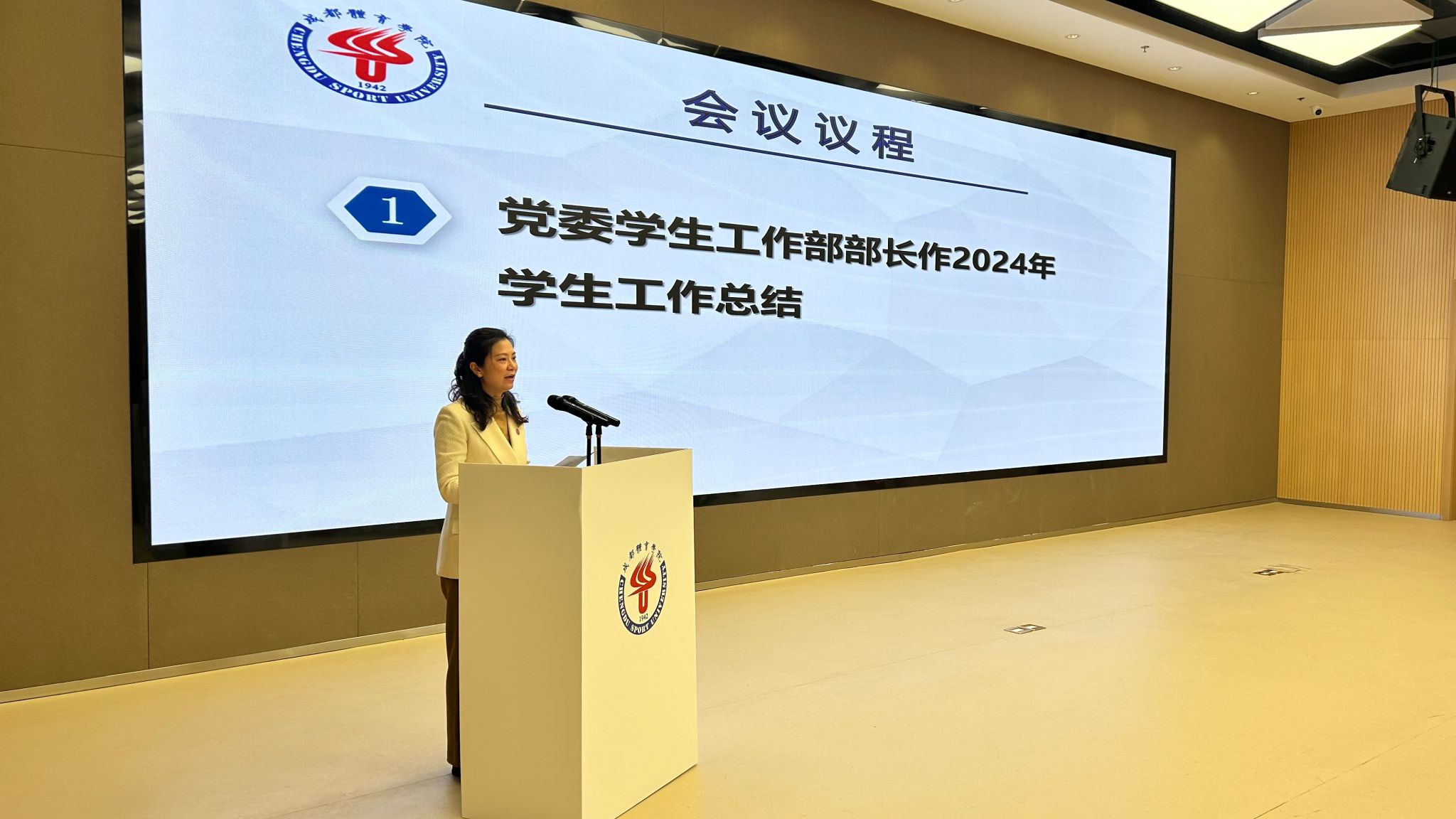 党委学生工作部部长/学生处处长/武装部部长黄霞,作了2024年学生工作总结和2025年重点工作交流。姚国超、万千、李阳、蔡静钰、潘同心、李挺之六位老师,就辅导员工作室建设情况以及他们在学生工作中的心得和经验进行了分享。会议还对“年度考核优秀”辅导员以及“指导学生在全省比赛中获得佳绩”的辅导员老师进行了表彰。
