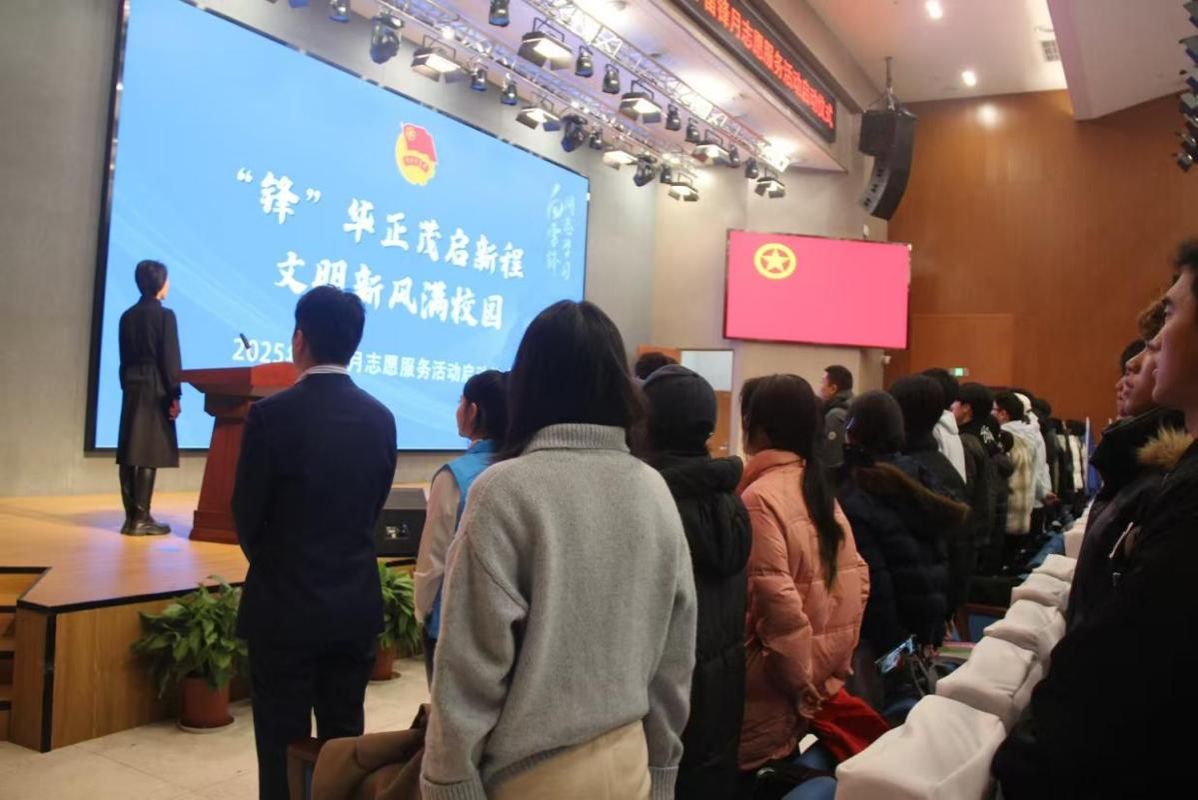 3月5日中午,在第62个“全国学雷锋纪念日”暨第26个中国青年志愿者服务日,学校学术厅内回荡着“学习雷锋好榜样”的激昂旋律。一场以“传承雷锋精神·共建文明校园”为主题的志愿服务活动启动仪式隆重举行,开启2025年雷锋月志愿服务的新篇章。学校党委常委、副校长邬红丽,党委学生工作部、团委负责人,马克思主义学院教师代表,各学院团总支书记以及学生代表参加。