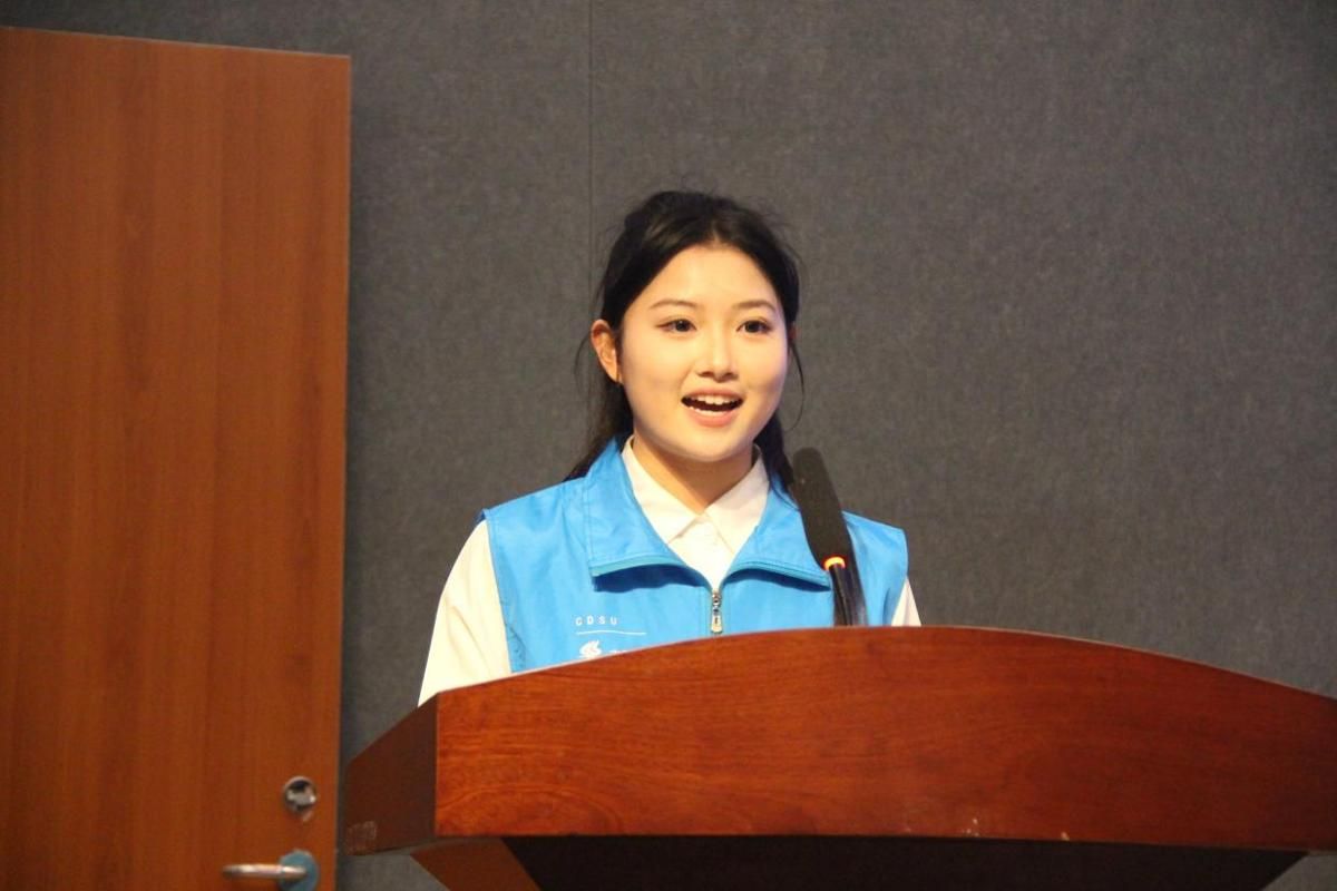 志愿者代表——新闻与传播学院杨思宇表态发言