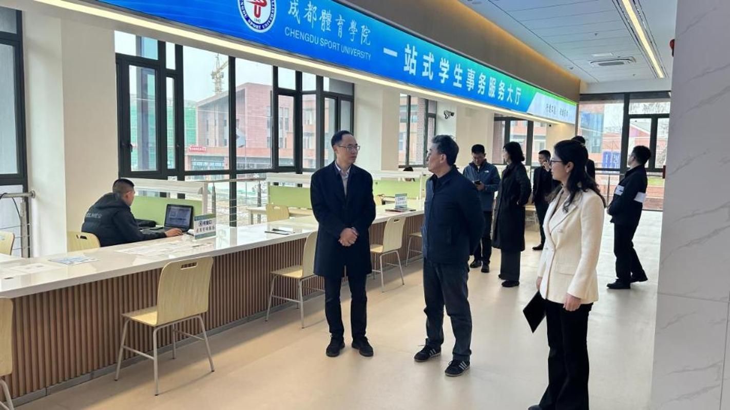 在走访调研过程中,丁念友一行实地查看了学生活动中心就业宣讲室、就业面试室、就业洽谈室、创业孵化园、生涯咨询室,以及一站式服务大厅、积极心理体验中心等场所。丁厅长对学校的高度重视和场地的规划建设表示充分肯定。