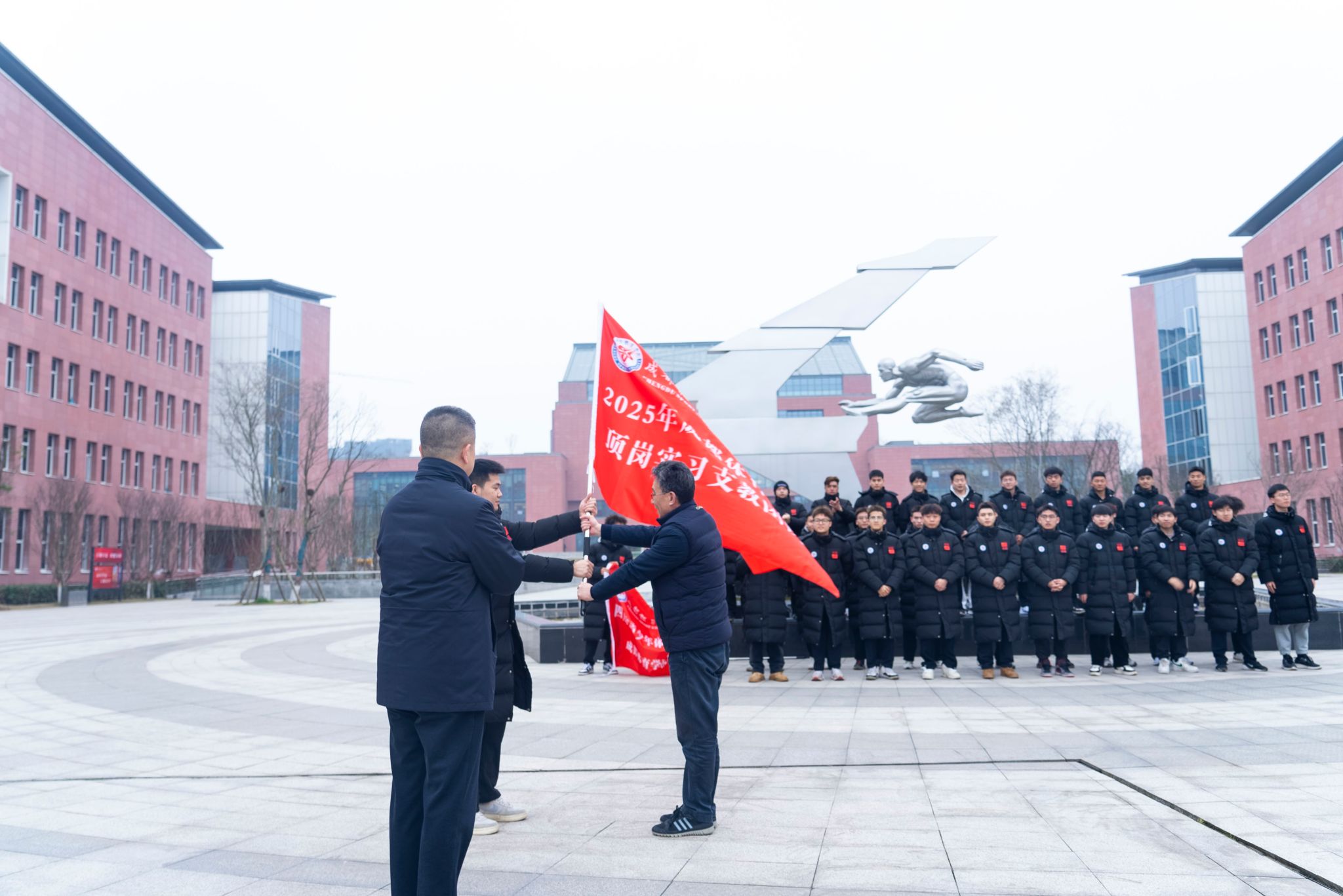 2025年3月11日上午,万象城在奋进广场举行了四川省体育支教allwincity万象城官方网站支教团出征仪式。四川省体育局党组成员、体育总监肖锋,学校党委副书记、校长潘小非,学校党委常委、副校长李林出席,教务处、体育教育学院相关负责人及36名体育支教志愿服务团全体师生参加。仪式由教务处处长李明达主持。