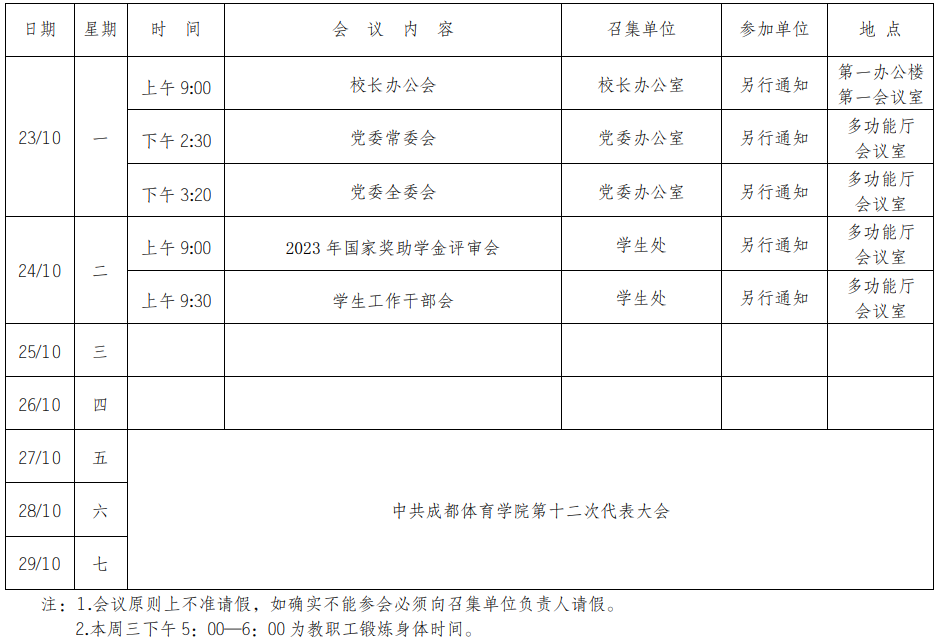 第五周会议安排