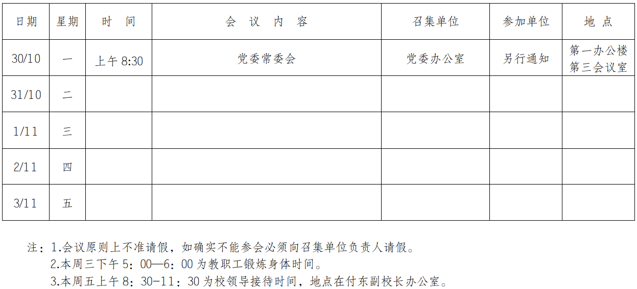 第五周会议安排