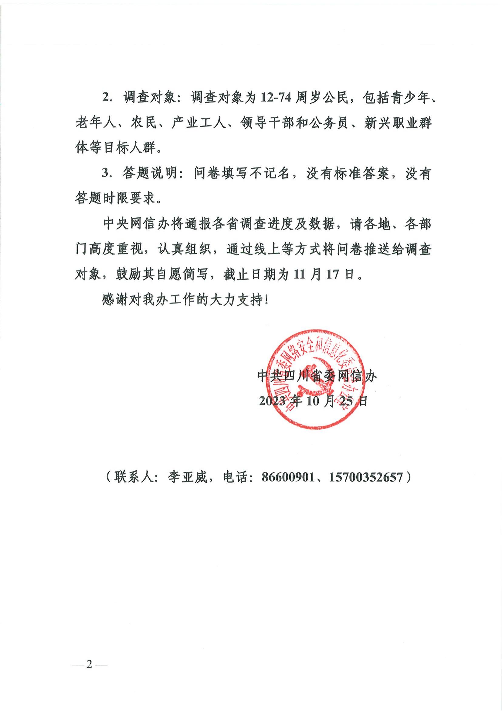 附件:中共四川省委网信办《关于请协助开展2023年全民数字素养与技能发展水平调查评估的函》