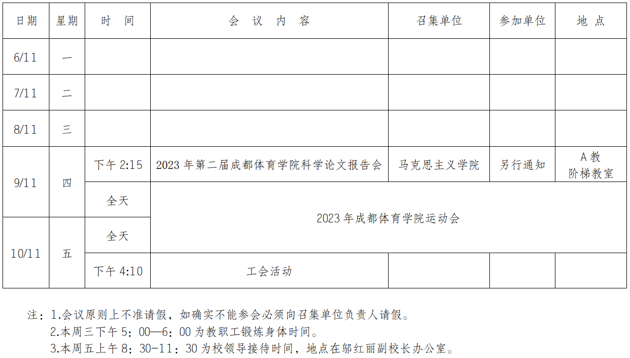 第五周会议安排