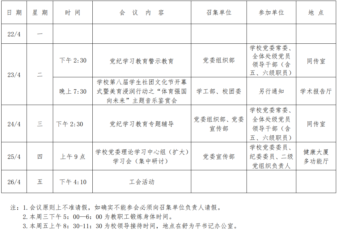 第五周会议安排