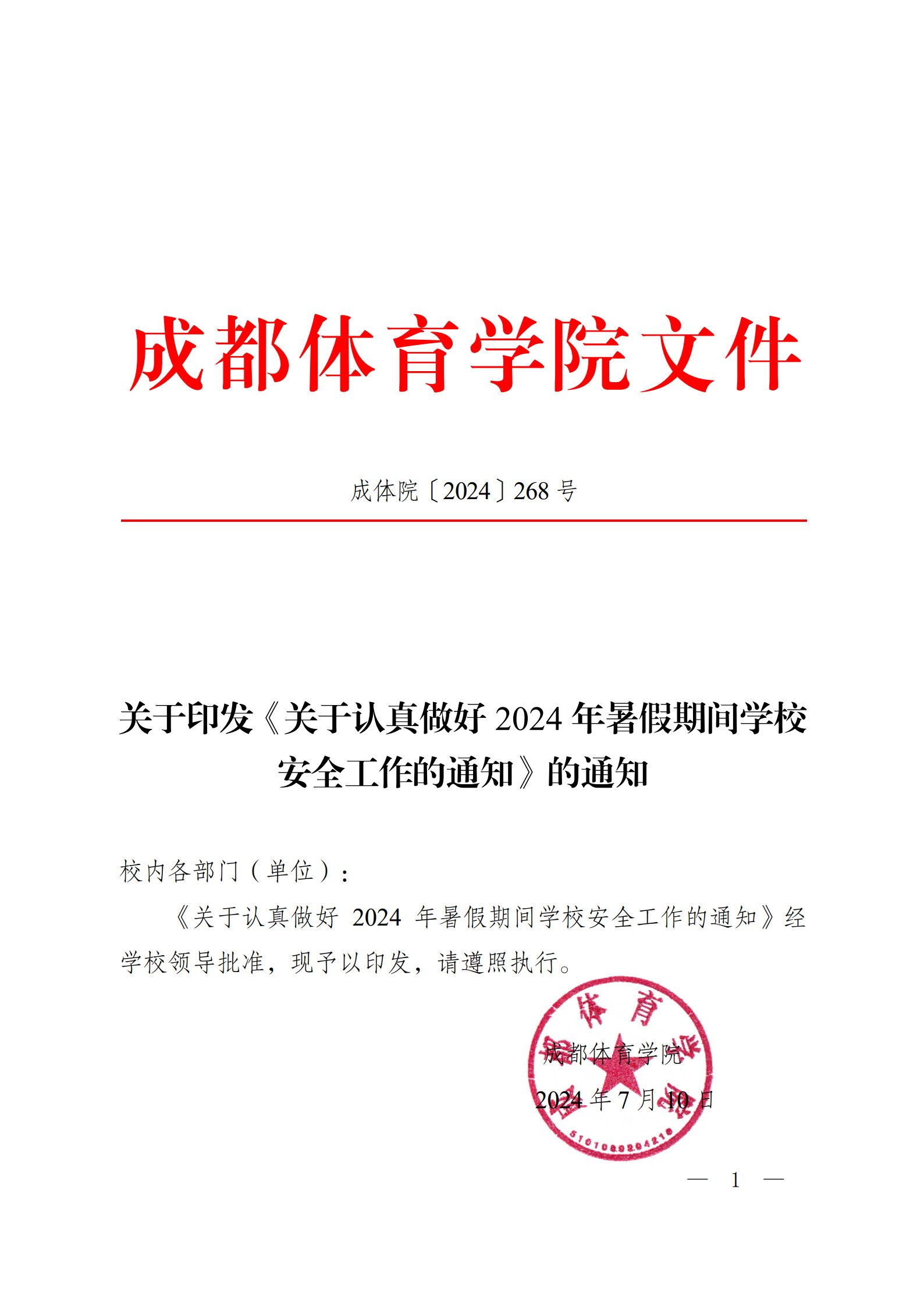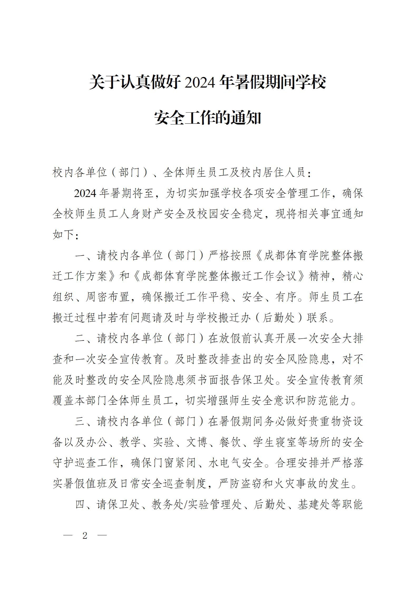 关于印发《关于认真做好2024年暑假期间学校安全工作的通知》的通知