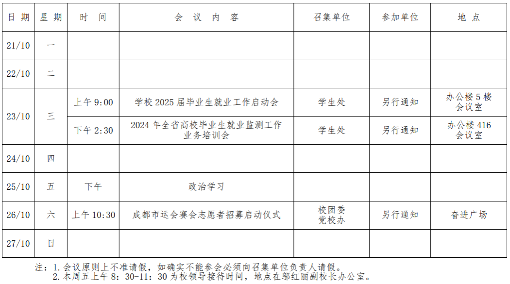 第五周会议安排