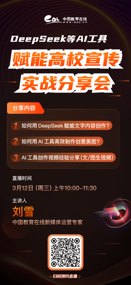 为进一步提升万象城宣传工作的质量与效率,深入探索人工智能技术与宣传工作融合的新路径,现组织相关人员参加由中国教育在线主办的“AI工具赋能高校宣传实战”线上专题培训。具体安排如下: