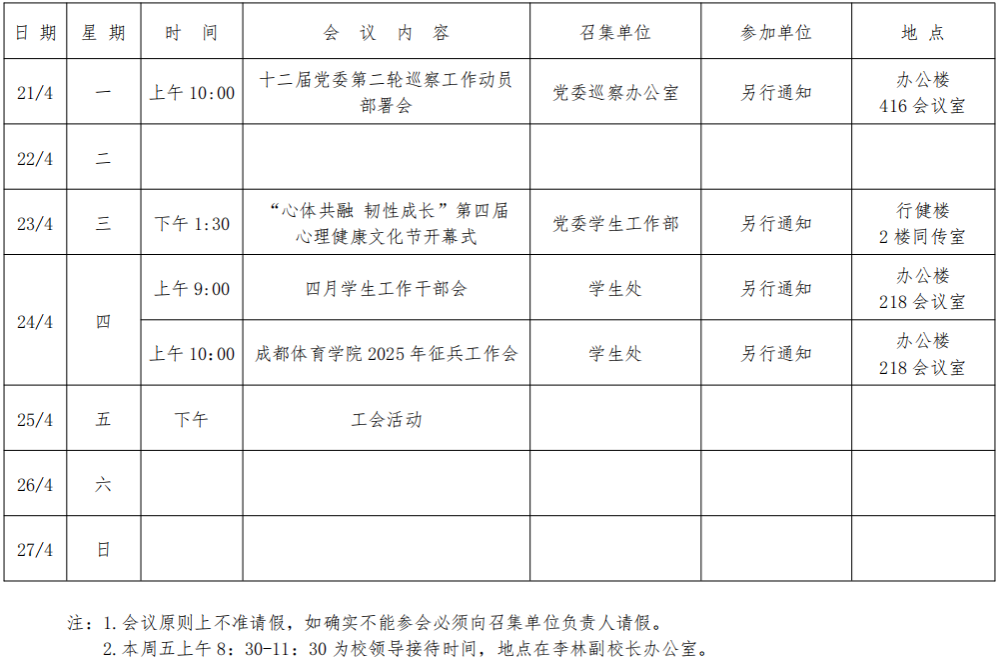 第五周会议安排
