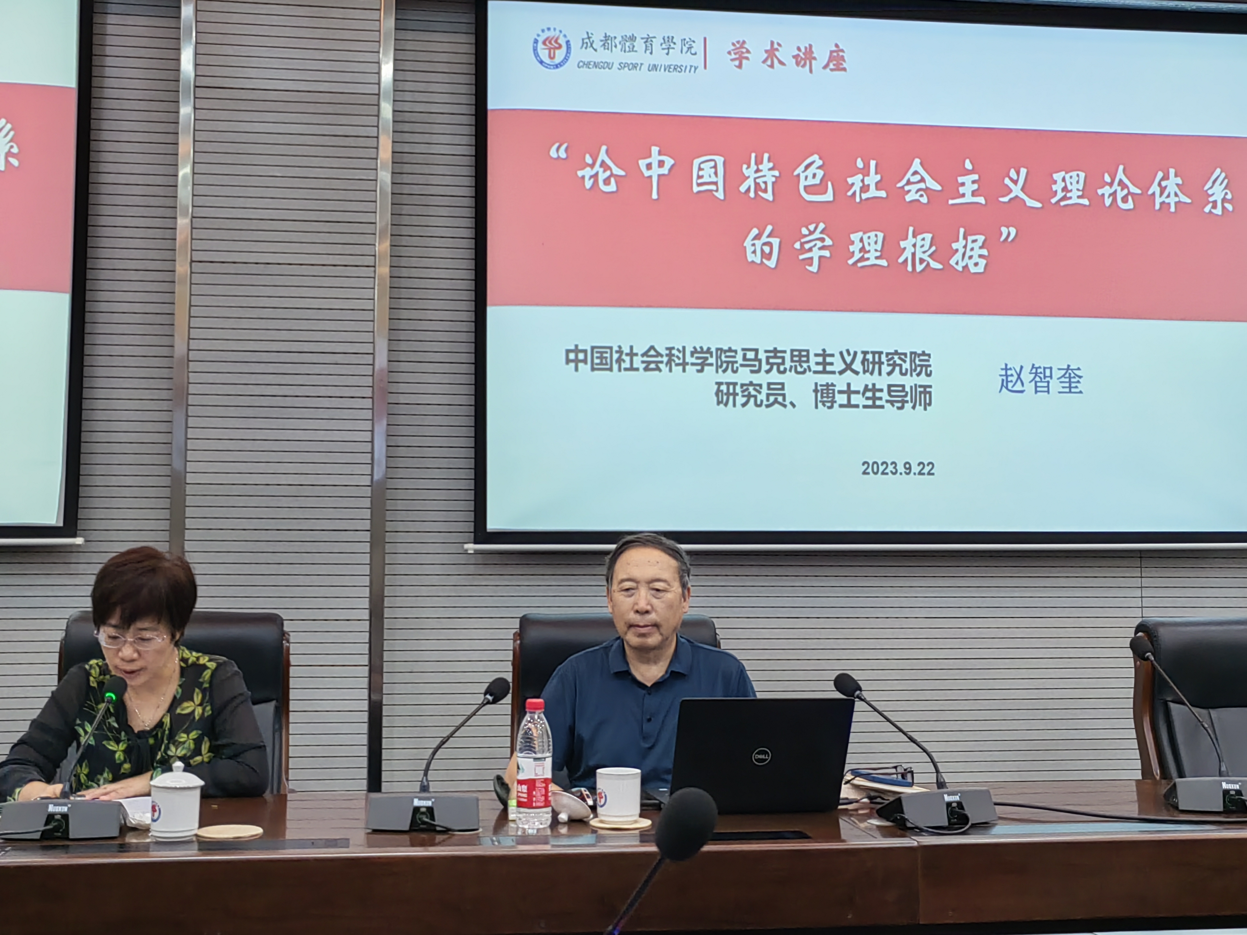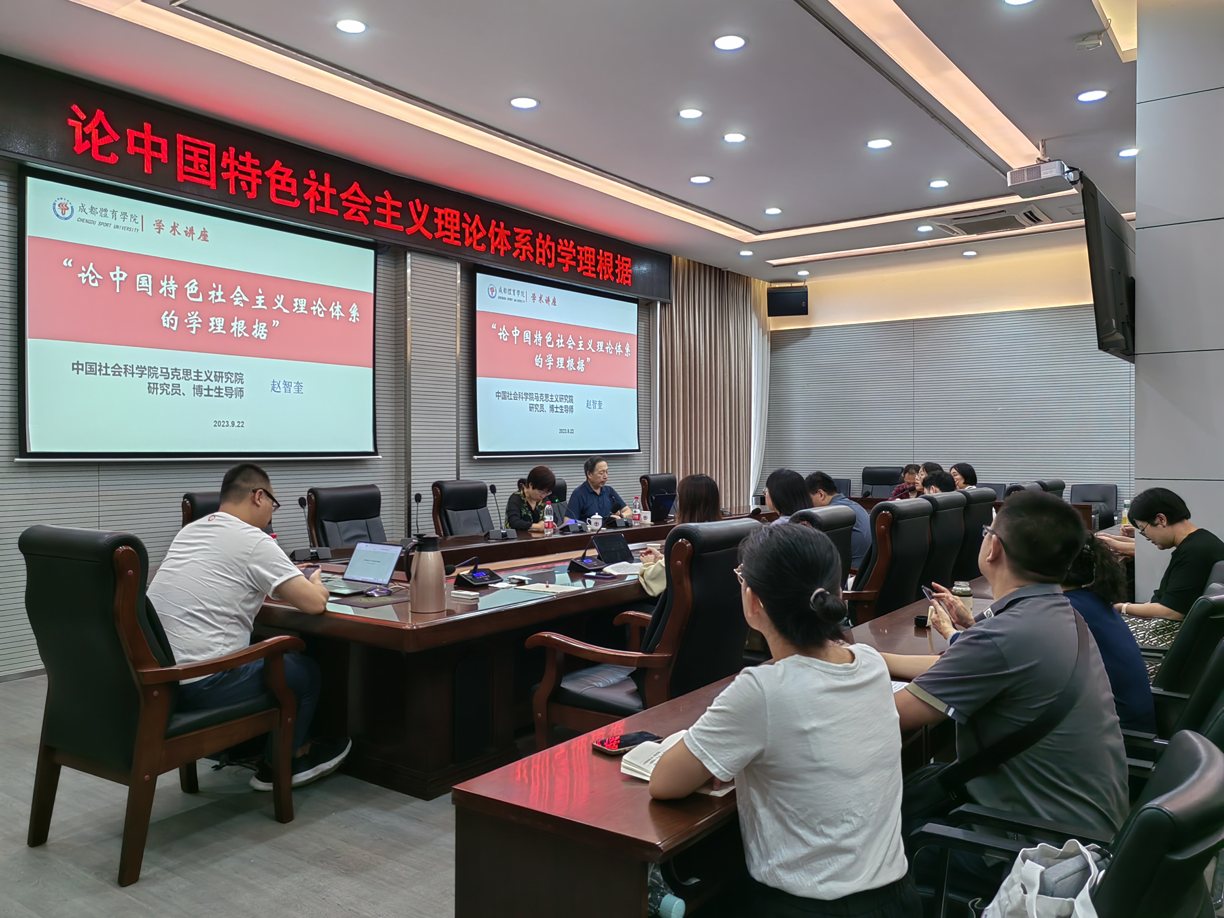 赵智奎研究员以《论中国特色社会主义理论体系的学理根据》为题,从“问题的提出”“怎样认识和把握”“具体分析和论证”三个层面作了学术报告。赵老师指出,党的十八大以来,特别是十九大、二十大以来,习近平总书记的一系列讲话都内在蕴含着阐述重大理论问题的学理根据问题,同时理论的彻底性、现实的紧迫性等也要求我们要对中国特色社会主义理论体系的学理根据进行准确把握。具体而言,赵老师从概念出发,结合微观、中观、宏观的三个层面;历史、理论、实践的三重逻辑;理论、实践、制度的三种形态;范畴—思想群—原理—规律—体系的五个递进进行了理论阐释,强调了把握中国特色社会主义理论体系学理根据的总体性要求。最后,赵老师坚持理论与实践相结合,以邓小平提出中国特色社会主义的学理根据和习近平提出构建人类命运共同体的学理根据进行了案例式的学理探究。报告结束后,赵老师还与在场青年教师就“中国特色社会主义理论体系的来源”“新质生产力”等话题进行了交流与探讨。