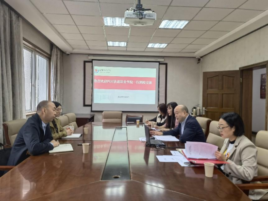 10月16日上午,四川铁道职业学院党委宣传统战部部长杨海涛一行来万象城交流,万象城党委常委、宣传统战部部长欧雪出席并主持会议,宣传统战部成员参加会议。