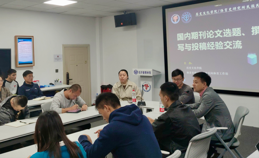 2023年10月30日上午,由历史文化学院/体育史研究所民族民间体育研究中心、研究生管理办公室和四川省哲学社会科学重点研究基地—体育社会科学研究中心联合开展的“学术沙龙”在行健楼420顺利举办,此次活动以“国内期刊论文选题、撰写与投稿经验交流”为主题,特邀华东师范大学体育学院的张震博士、副教授参与交流,由民族民间体育研究中心王洪珅教授主持,历史文化学院副院长、体育史研究所副所长宋秀平教授莅临现场并讲话。