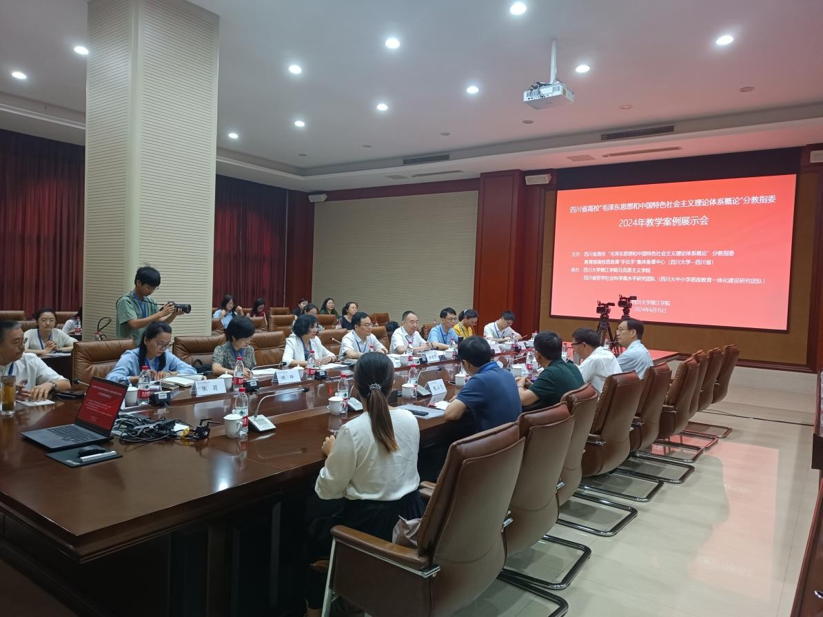为贯彻落实习近平总书记对学校思政课的重要指示精神,坚定不移用习近平新时代中国特色社会主义思想铸魂育人,2024年6月14日—16日,四川省高校思想政治理论课教学指导委员会“毛泽东思想和中国特色社会主义理论体系概论”分教指委(简称“分教指委”)在四川大学锦江学院举行教学案例研讨会。本次会议在全国高校思政课“手拉手”集体备课中心云上大练兵直播平台进行现场直播。会议主要研究全省高校“毛泽东思想和中国特色社会主义理论体系概论”(简称《概论课》)课程建设面临的新形势新任务,同时对“毛泽东思想和中国特色社会主义理论体系概论”课教学案例进行现场研讨打磨。我院党委书记、院长陈晔教授作为四川省思政课《概论课》分教指委员带领该课程教研部副主任邓艾敏及教师汪治宇、陈学柳一行参加了此次会议。