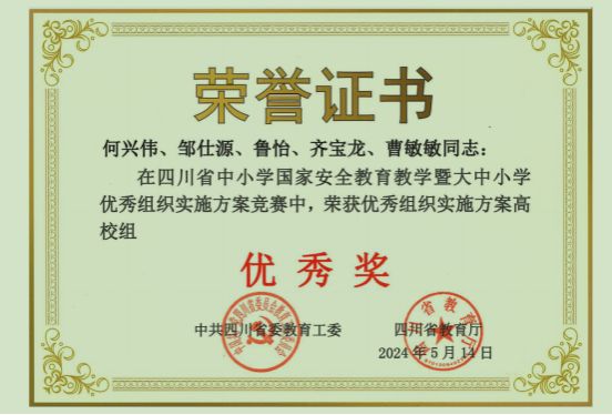 近日,中共四川省委教育工委、四川省教育厅发布《关于公布四川省中小学国家安全教育教学暨大中小学优秀组织实施方案竞赛结果的通知》,万象城党委保卫工作部/保卫处何兴伟、邹仕源、鲁怡、齐宝龙、曹敏敏团队撰写的《allwincity万象城官方网站关于开展国家安全教育实施组织方案》脱颖而出,荣获组织实施方案高校组的优秀奖,实现学校在该项赛事的新突破。
