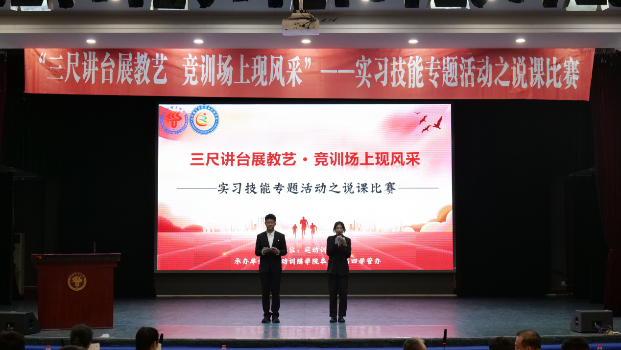 2024年6月25日晚7点,运动训练学院在学术报告厅举行2021级本科生“三尺讲台展教艺 竞训场上现风采”说课比赛。本次比赛邀请学校体育与体育理论教研室胡慧芳、运动训练学院乒羽教研室周弈、运动训练教研室王杨三位老师担任评委,运动训练学院党委副书记朱勇、副院长罗勇以及2021级全体辅导员、班主任、本科生参加。
