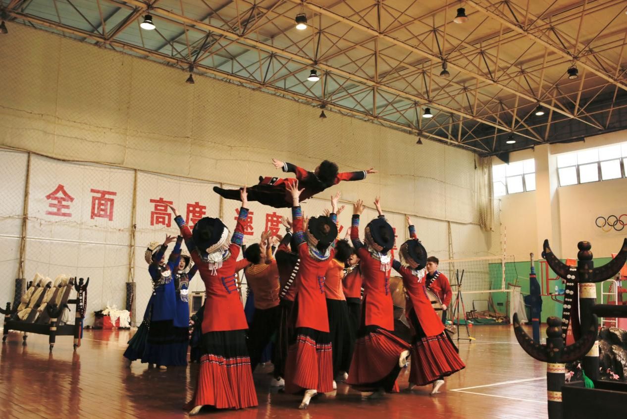 中华人民共和国第十二届少数民族传统体育运动会(以下简称:第十二届全国民族运动会)四川省代表团表演项目于6月1-27日组织进行了第一阶段排练工作。6月28日上午,四川省民族宗教事务委员会文化宣传与外事联络处三级调研员张德贵和四级调研员刘瑜、卢国宾到万象城就第十二届全国民族运动会四川省代表团表演项目第一阶段的完成情况进行检查,学校艺术学院领导班子及项目负责人陪同。