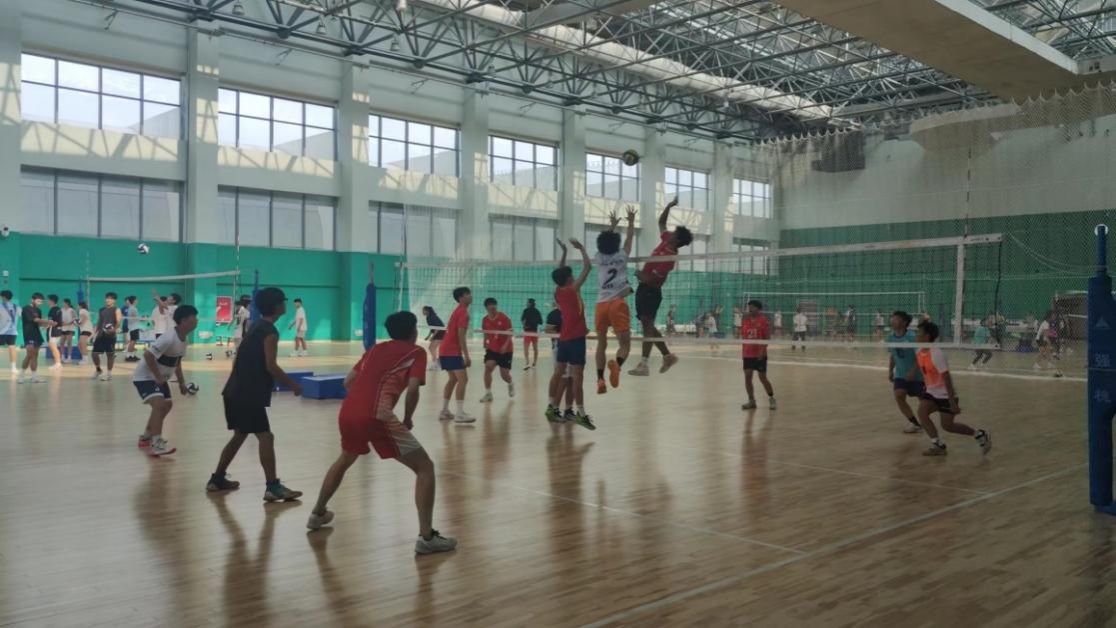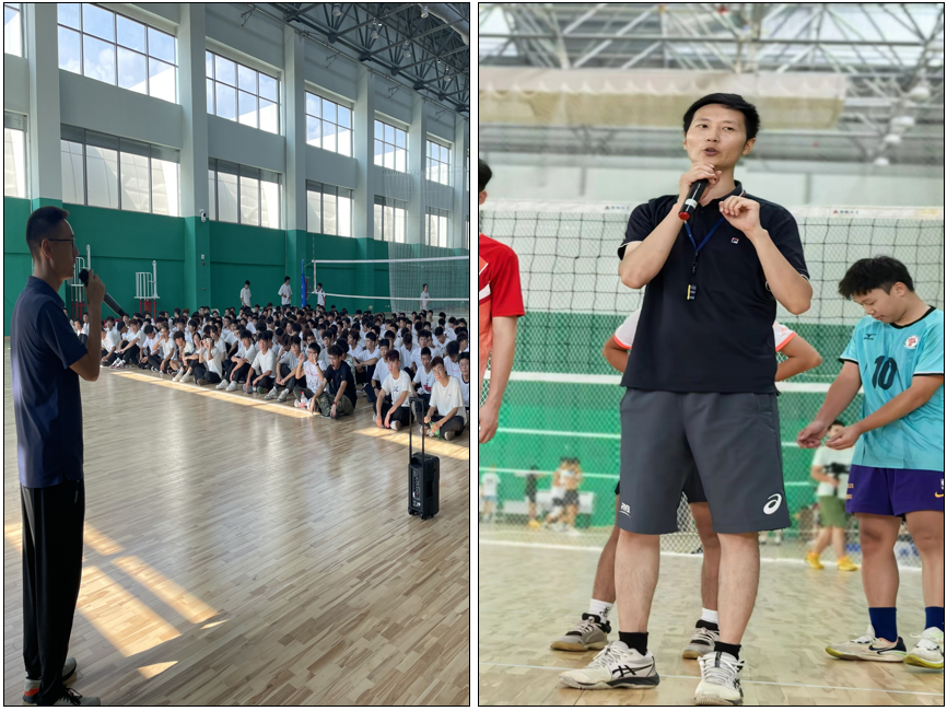 紧接着,一行人移步至球类馆。排球教研室王世伟、石翔宇2位老师分别为同学们介绍了球类馆赛事承载能力和相关功能,并就学校排球项目发展历史、特色以及教育教学等情况进行了宣讲。活动现场,学校男子排球队主教练吴晓雷介绍了球队的发展历程及取得的荣誉,并现场为同学们展示了代表队训练,代表队队员精彩的训练内容和比赛,赢得新同学们的阵阵掌声与喝彩。