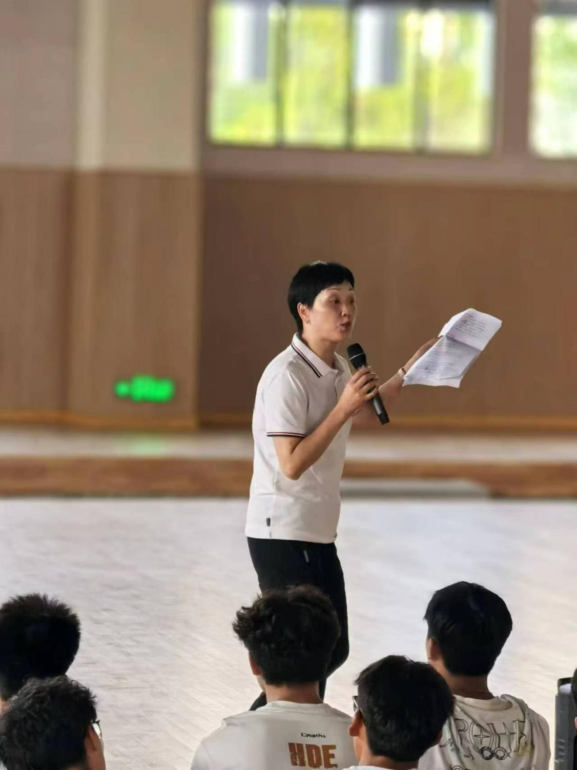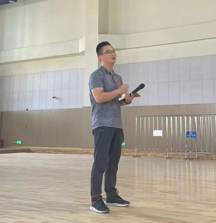 体操馆内,学院副院长吴小彬对新同学的到来表示热烈欢迎,他详细介绍了体育教育专业发展历程和规划。同时,对专业培养方案、课堂教学、实践教学、毕业论文等情况进行解读。他对同学们提出建议,希望他们对标专业培养目标,制定学习计划,脚踏实地、勇于挑战,在新起点上,勇敢地去践行和追逐自己曾经的诺言与梦想。