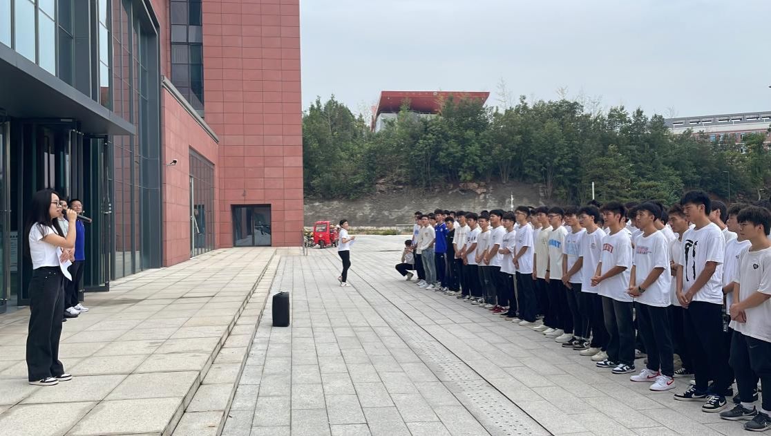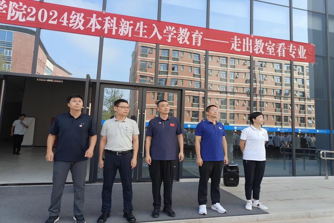 活动伊始,学院全体班子成员与新生见面。随后,学院党委书记郭晋川对学校的发展历程、办学理念和成效进行介绍,并结合学习、生活实际,深入浅出地阐述了爱国、爱党、爱校的重要意义,鼓励学生们要将个人理想与国家命运紧密相连,引导新生坚定理想信念,熟悉校史校情,培育爱国荣校情怀,树立远大人生目标。